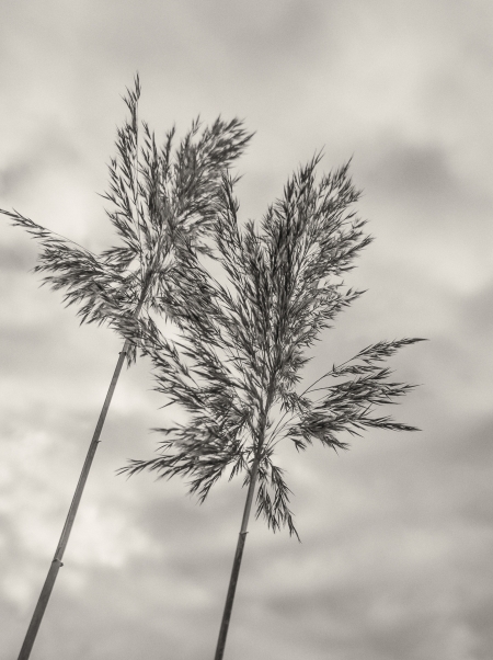 Behind the parking lot at the Mohegan Lake shopping centre there was a marshy area: small pools of water surrounded by tall grasses. I liked the sky in the background and from this low angle two of the grasses looked a little like palm trees. Their original beige color didn’t seem to add much so I thought about converting the picture to black and white. This is the result.
