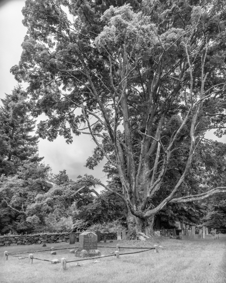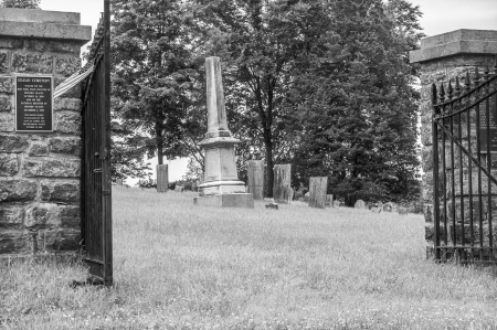 A plaque on one of the entrance pillars reads: “Gilead Cemetery. Placed on the New York State Register of Historic Places October 14, 1988 and on the National Register of Historic Places December 1, 1988. This bronze plaque is dedicated by the town of Carmel and the Historical Society, October 14, 1998”. Ken Warnecke of Mahopac researched and wrote the original 1988 proposal for listing the Gilead Cemetery on the State and National Registers. It contains a lot of information about the cemetery as well as an old photograph of the cemetery – interestingly the huge trees, which are so striking (see below) are absent from this photograph.