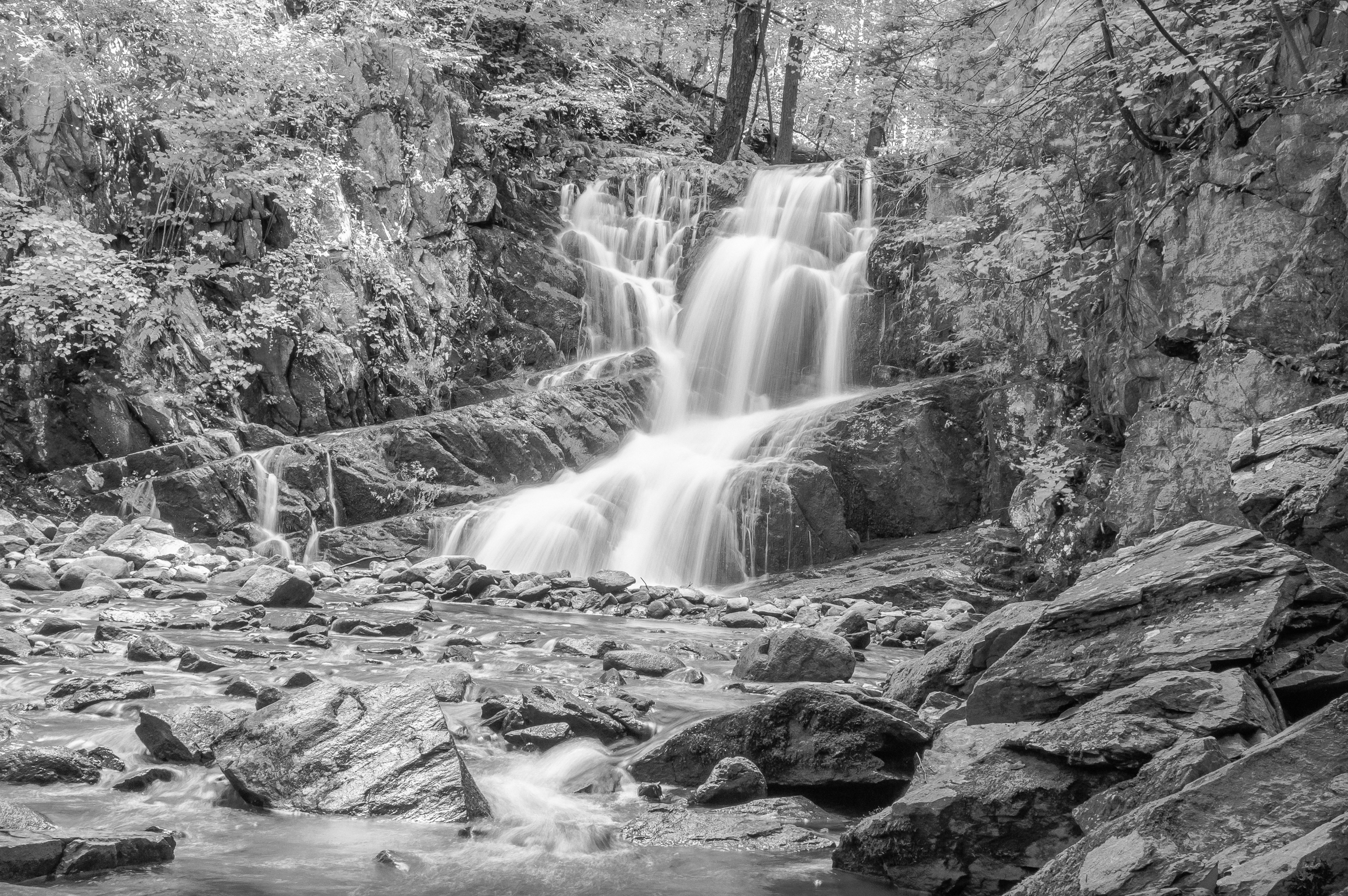 Indian Brook Falls is very close to Constitution Marsh. In fact you use the same parking area. I’d been driving past here on route 9d for years and never knew that it was here. That’s probably because it’s not at all well marked. I don’t believe there’s a sign on route 9d. Even when you get to the rather out of the way parking area you’ll find signs to Constitution Marsh but not to Indian Brook Falls. There are really only two ways you could go: right to Constitution Marsh and left. So I guessed left. This took me under the route 9d bridge. Just after the bridge there is an old gate with a trail on the other side. This trail goes down a little and then curves to the right with a moss covered wall on your right. Don’t be tempted follow the trail to the right. Instead when you get to the end of the wall you’ll see a small path going down to your left. Follow this path and it will take you down to the brook. Keep going for a couple of minutes and you’ll find the falls. It’s worth it. I believe there’s some kind of romantic story associated with the falls. Something to do with an Indian maid and her doomed relationship with a western guy, but I haven’t been able to discover the details.