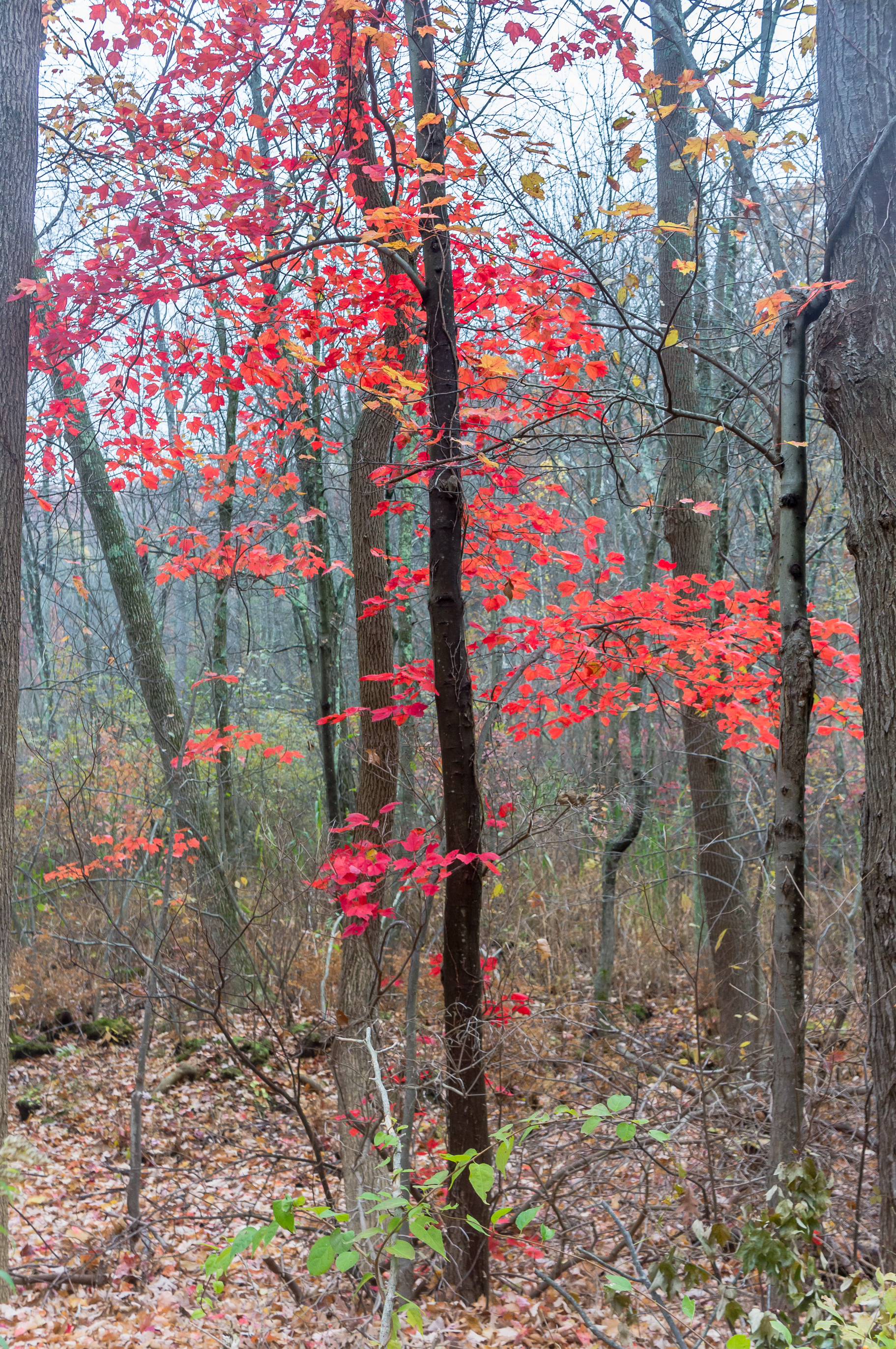 Most of the leaves around us have now fallen, but there are still a few flashes of colour here and there.