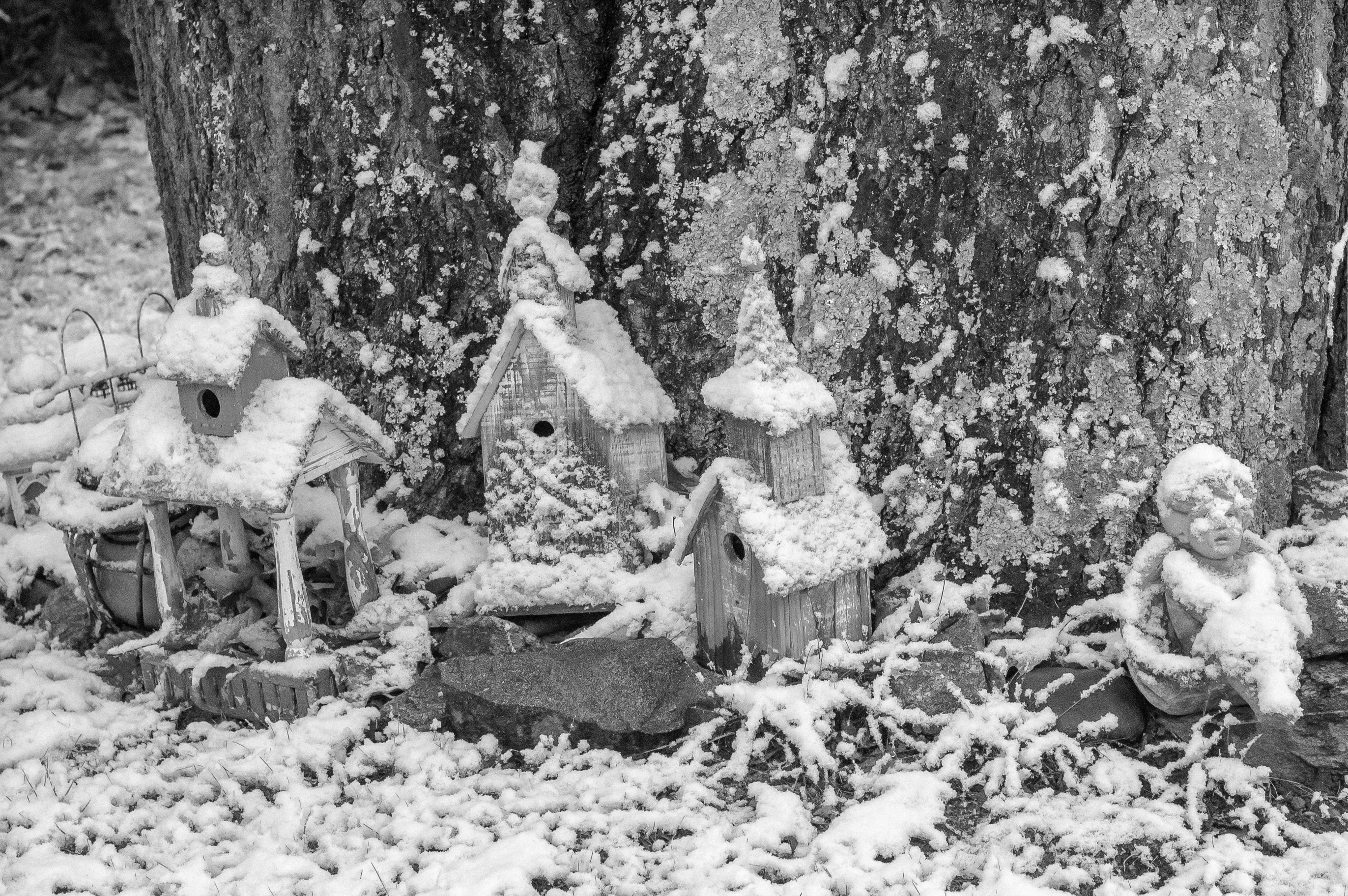 We just had our first snow of 2013. This was the kind of snow I like. It stuck to trees and grass, but didn’t stick to hard surfaces. Less than 1/2 inch total. It looks nice but doesn’t inconvenience me much. I certainly won’t have to shovel. I imagine that as temperatures rise it will all have gone by this afternoon.