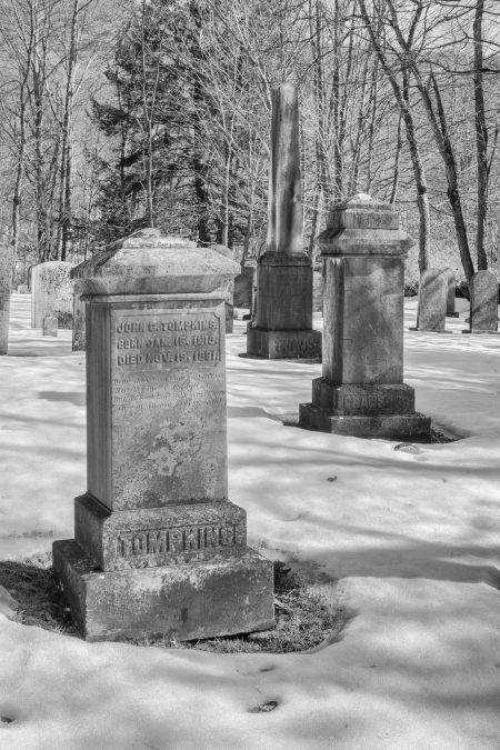 The cemetery was incorporated May 4, 1853 as Carmel Valley Burial Ground Association (now defunct). A meeting was held at the home of William M. Hadden. Fourteen trustees were elected, eleven of which are buried in Tompkins Corners Cemetery: Barthalemew Tompkins, Isaac Hulse, Hiram Adams, Isaac S. Austin, William Hadden, Robert Barker, Ebaneser Lockwood, Daninel Lockwood, John Hulse, Titus Sackrider, Samual Christian. The following trustees are buried elsewhere: Ira Conklin, Moses Hadden, Norman Travis.