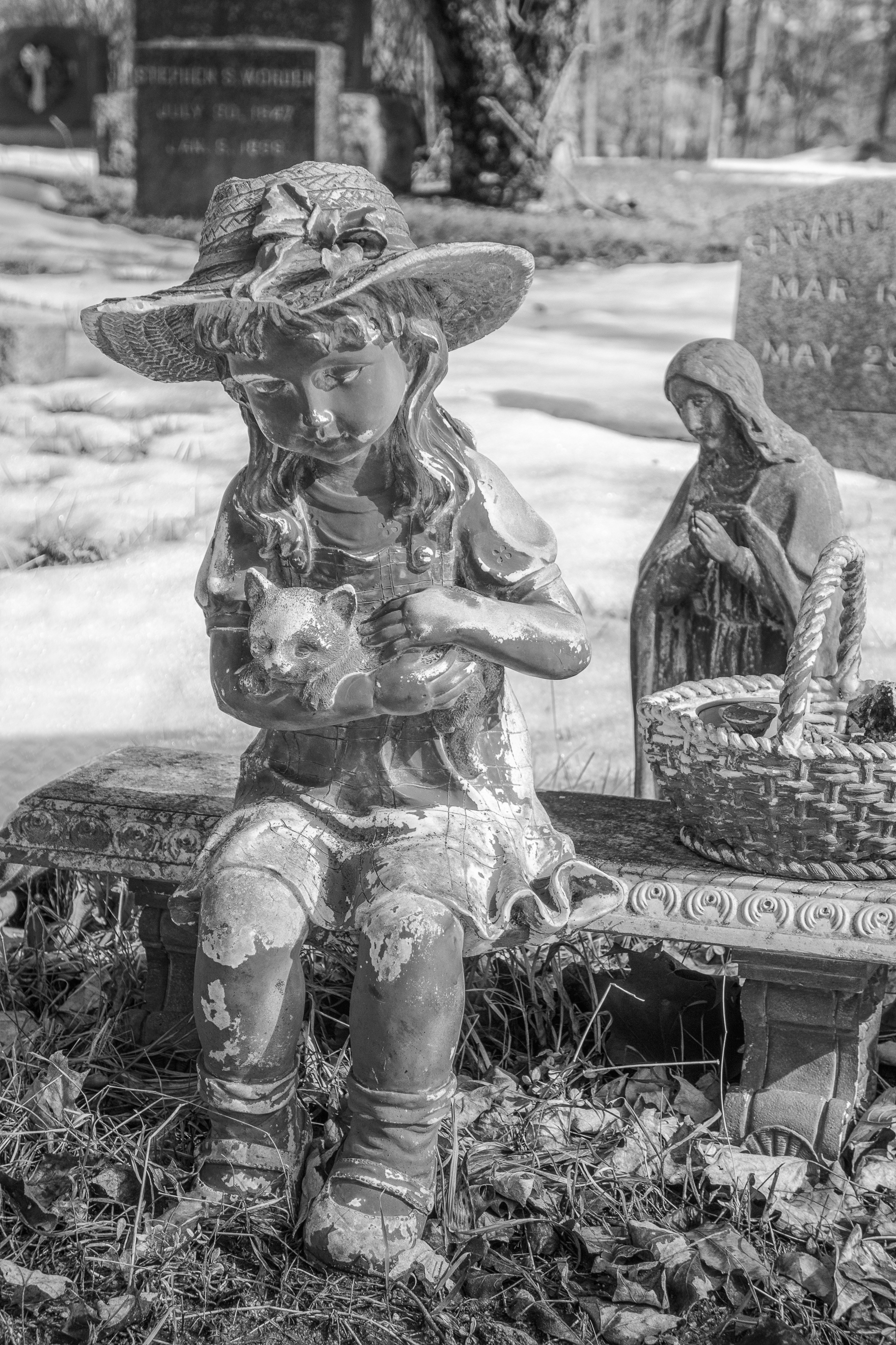 The cemetery is in two sections. The old section is to the right side of the car path that goes through to the back. The new section is to the left. This section is still used for burials. Many of the stones in the old section were down, broken, or hard to read, though beginning in 2009 efforts have begun to conserve the old stones (through an anonymous grant).