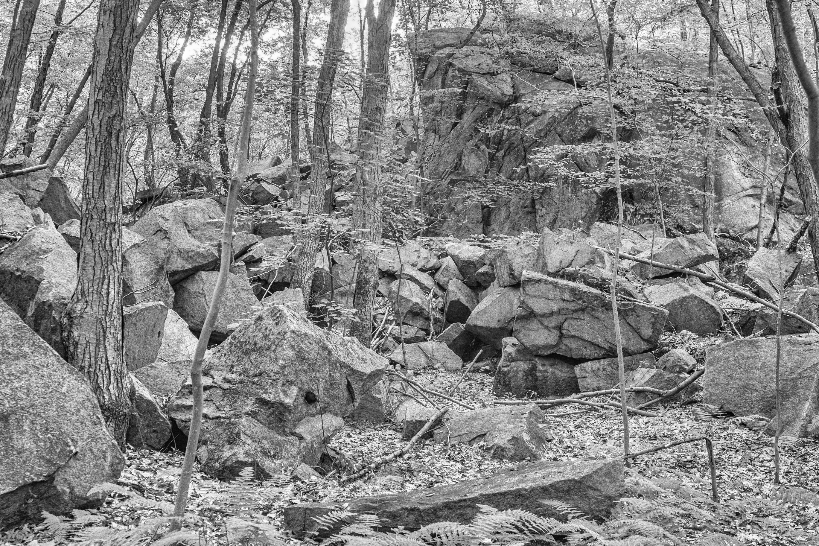 Tucked away on a hillside in northern Westchester County, NY, Sylvan Glen Nature Preserve is the site of a former quarry which supplied a honey-colored granite for the approaches to the George Washington and Whitestone bridges. The property was purchased in 1981 and was opened as a park when additional adjoining properties were acquired. Quarries of various sizes and remnents of the operations are located throughout the western portion of the park. Subsequent acquisition of adjacent land extended the park onto former farmland and provided another entrance to the park.