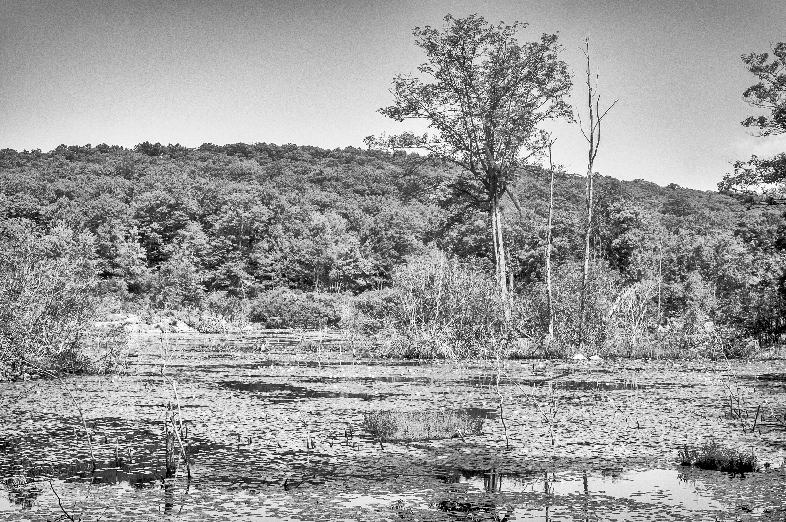 After a while the Appalachian Trail crosses the three lakes trail. I’ve since read that there’s a ruined house at this intersection. Unfortunately I didn’t see it – perhaps because I turned right onto the Three Lakes Trail. After walking through essentially the same landscape for some time it was refreshing when the trees finally thinned out and exposed Hidden Lake.