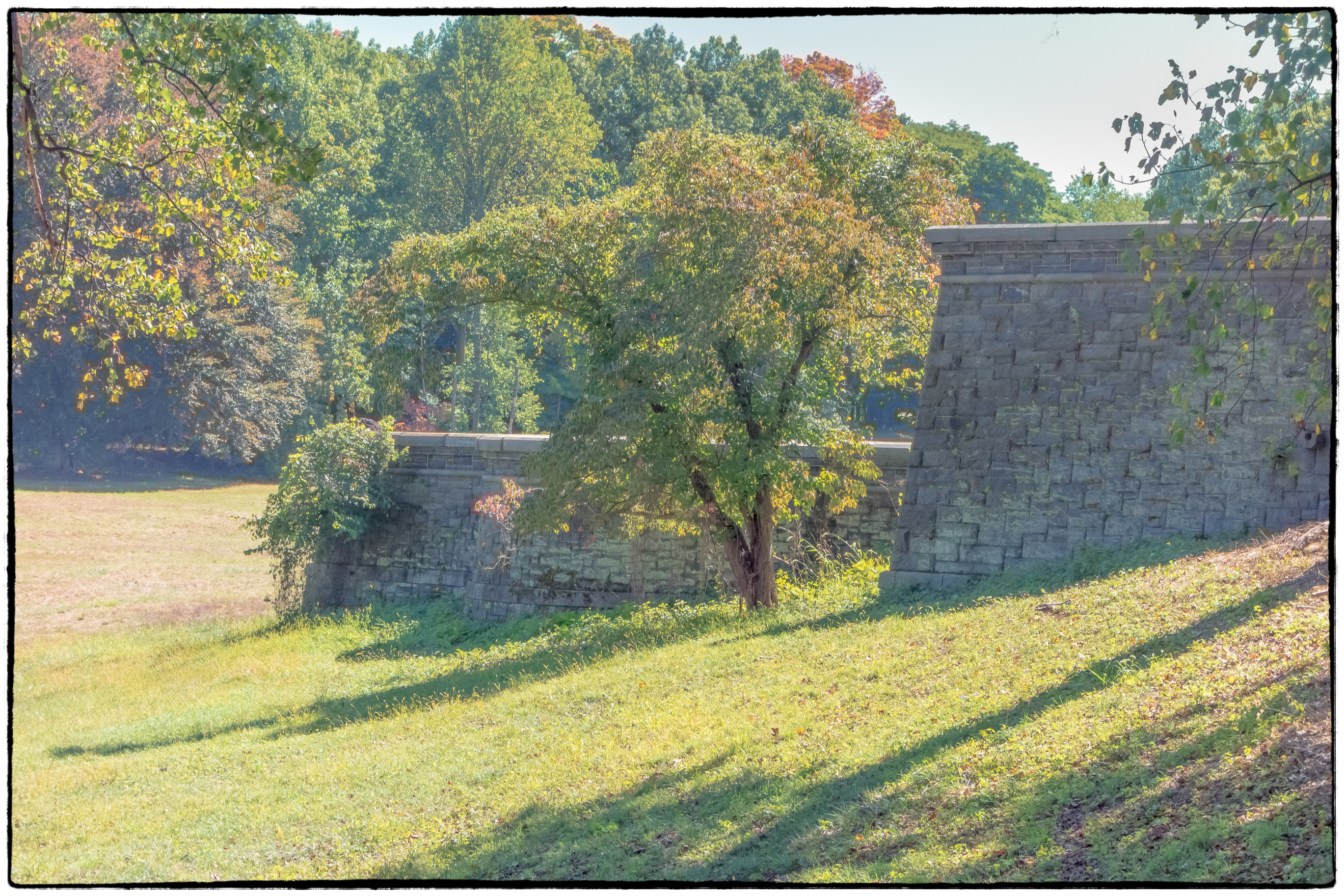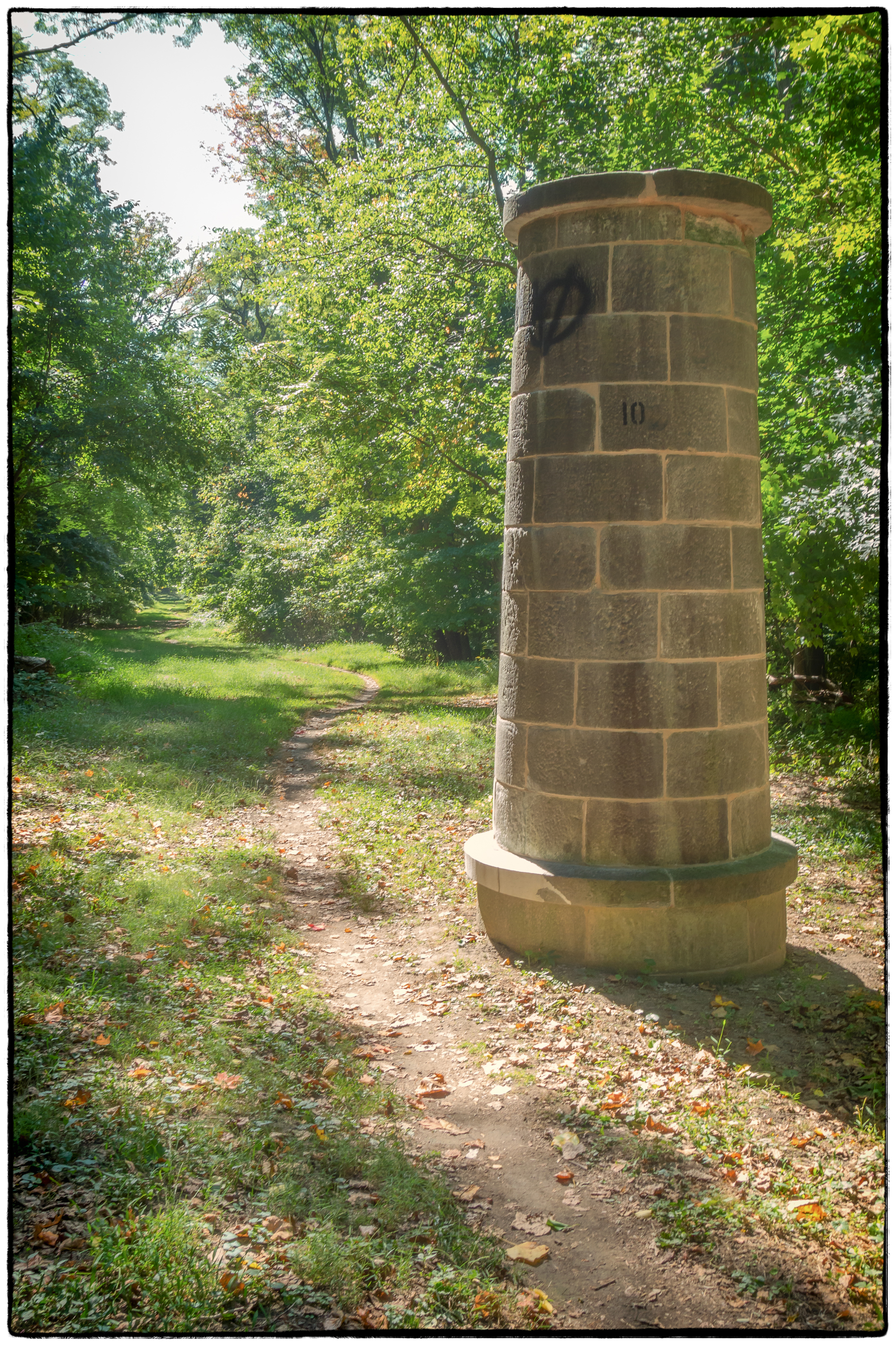 So today I decided to go somewhere flatter, less covered in roots and stones. Rockwood Hall seemed to fit the bill. We walked down the Old Croton Aqueduct and then turned off towards the Hudson and the site of the former Rockerfeller Mansion. Little now remains: just the foundations (with a great view of the Hudson) and a number of impressive trees.