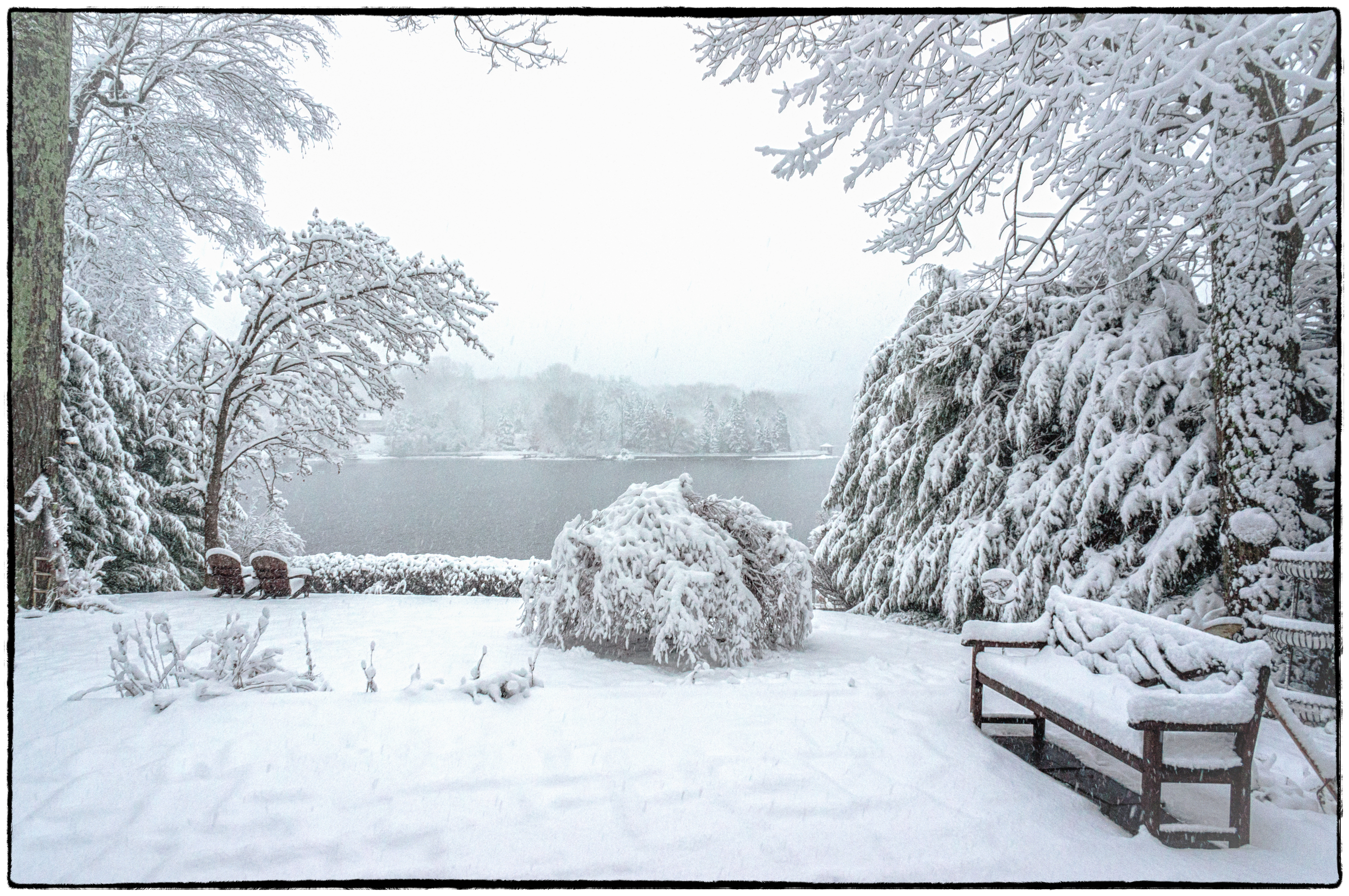 Today (two days later) I went down to our other house to shovel the snow in the driveway and was surprised to find that there wasn’t any. What a difference 26 miles makes.