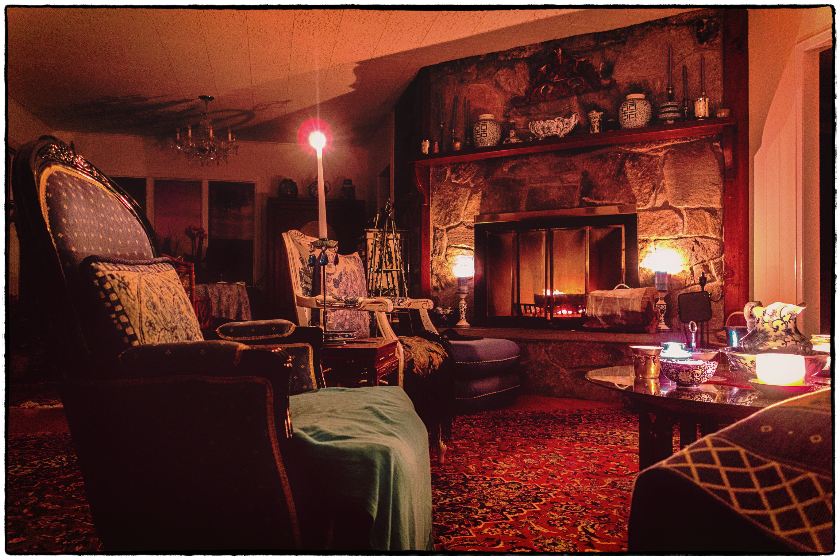 The above pictures were taken around 2:00 p.m., five hours into the storm and with about another 10 hours to go (although to be fair it did diminish significantly as the day went on). Shortly after they were taken the power went out. A fire and some candles made the situation somewhat more bearable. As a friend remarked it looks quite romantic. Yes – it was warm enough and quite cosy, but when you think that for us no power means no water (we have well water and without electricity the well pump doesn’t work) and no water means no functioning toilets – the romance kind of goes away. The power came back on around 5:15 p.m. – shortly after this picture was taken – so it wasn’t too bad.