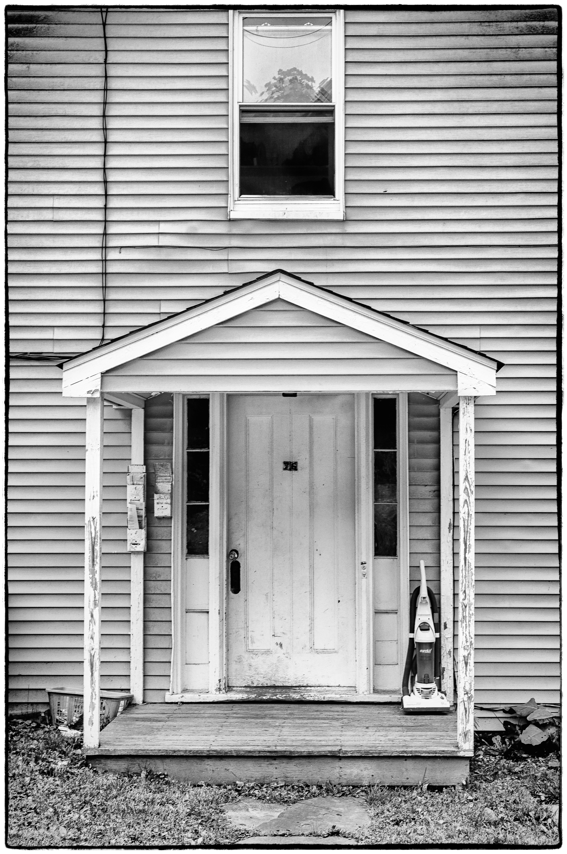 Taken during a walk in Ossining, New York. The vacuum cleaner looked somewhat incongruous sitting out on the porch. This is a black and white conversion of a color shot that I rather liked. In color the vacuum cleaner is a bright green color, which in some ways makes it stand out even more. It looks as if the lens suffers from vignetting, but that’s not actually the case. The dark areas seen at the edges of the picture were actually dark patches on the house – maybe moss or something.