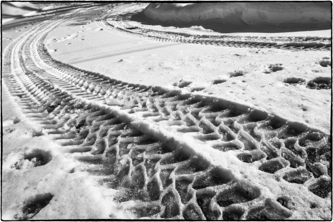 February 11, 2015 by Howard Dale Another picture taken while walking the dog. I liked the textured tracks; the way that they curve away into the distance and thought that a low angle would work well.