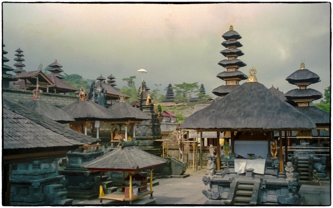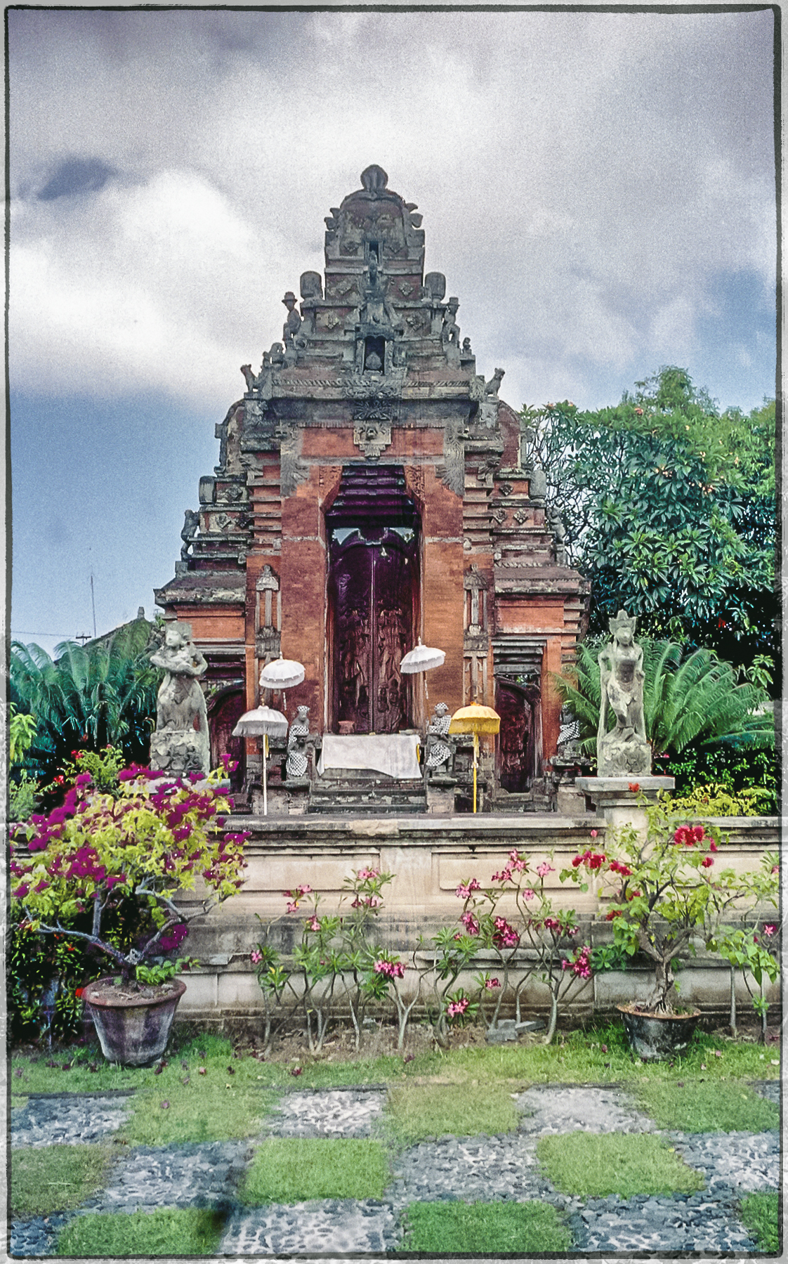 In an earlier post (Bali II: Around Ubud) I mentioned that I was disappointed because I knew I had taken pictures of some quite spectacular temples in Bali, but was able to find neither the negatives nor the prints. I later added a note that while going through some moving boxes I had found both the prints and the negatives. So here are some scanned images of the aforesaid temples.