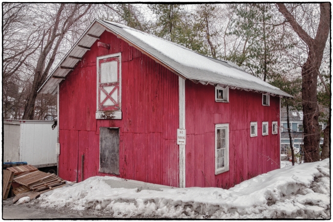 Yet more pictures taken while walking the dog. Main street, Briarcliff Manor (otherwise known as Pleasantville Road) has a small number of shops, restaurants, municipal buildings etc. on either side of the road. I often take the dog for a walk there on Saturdays and then pass through this area on the way to Moonbean Cafe for a coffee while I wait for my wife to finish her dance class. On this particular day I decided that, for a change, rather than walk along the main road I’d walk behind the stores on one side of the road. As I did I came across this building. It looks fairly old and seems completely out of place with the other relatively modern buildings. I have not idea what it’s purpose is – maybe storage for one of the shops? It looks more like the kind of old red barn you’d find in a rural area rather than something you’d find tucked behind a shopping area.