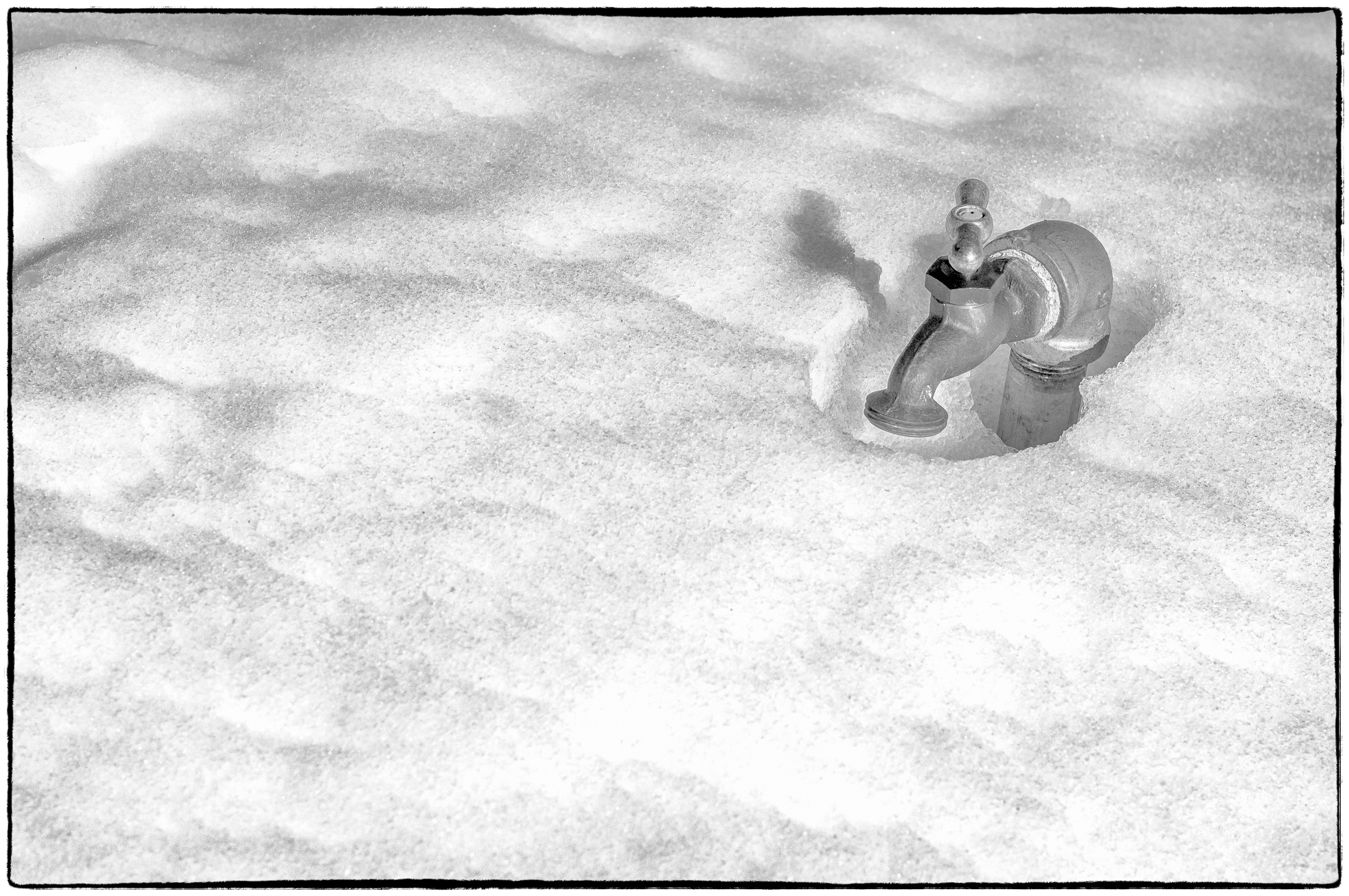 Although the weather has improved significantly we still have 2-3 feet of the snow on the ground around here so when I saw this faucet just barely sticking out above the snow it seemed worthy of a photograph. It seemed so incongruous to see something I associate so much with Summer peeping from the Winter Snow.