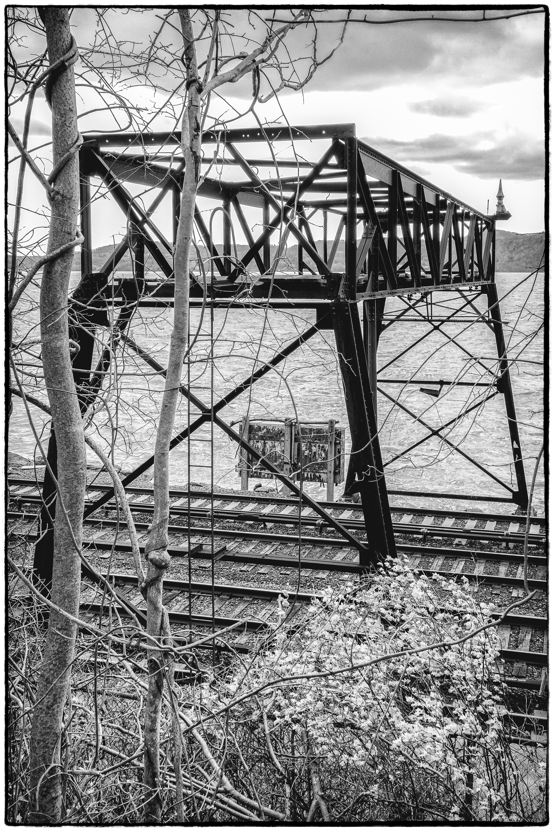 As you can see it spans the railway tracks. Less clear from this angle is that the platform on top is covered in wood planks. It’s not connected to anything on either side, but I suppose it must have been at one time.