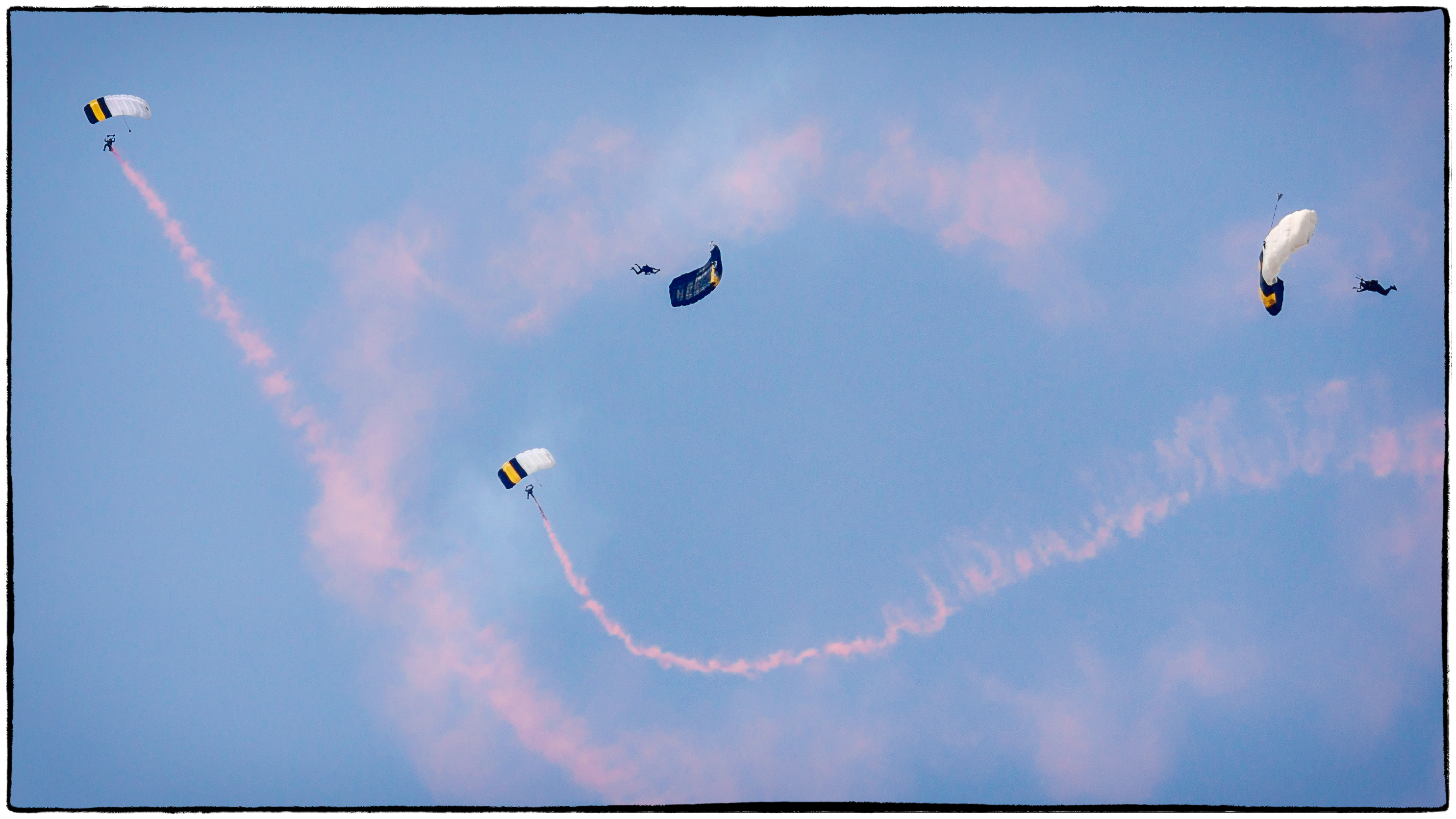 The US Military Academy, West Point Black Knights opened the show with a display of parachute jumping. The Air Show Website describes them as follows: