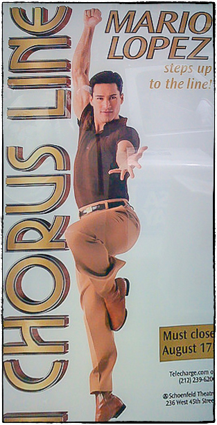 We went to see a new production of “A Chorus Line” in 2008. We’d seen it before (I’d seen it in the original production around 1975). The (relatively minor but important) role of Zach was played by Mario Lopez who my wife was familiar with from “Dancing with the Stars” and who was considered “hot” at that time (maybe still is for all I know). So off we went.