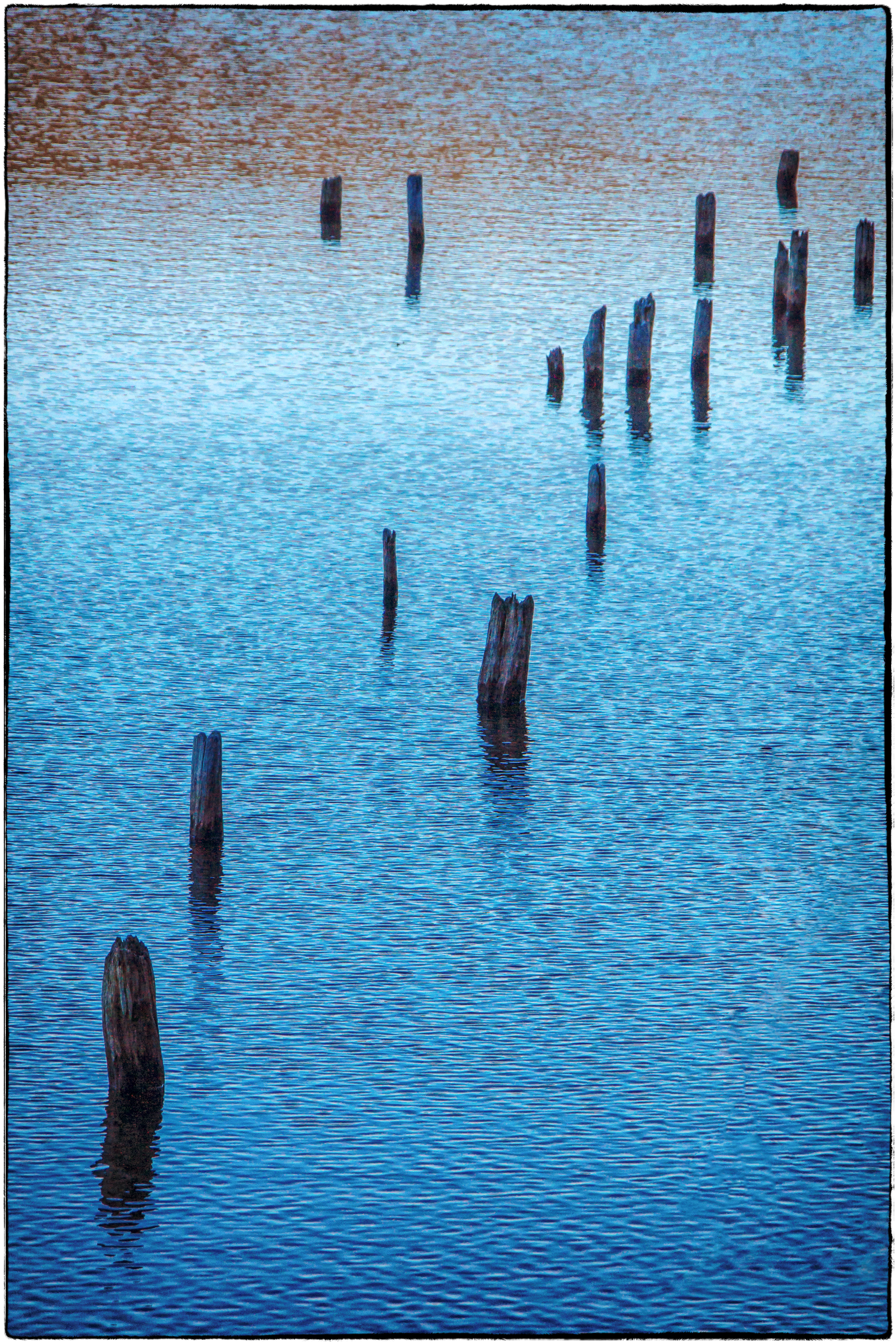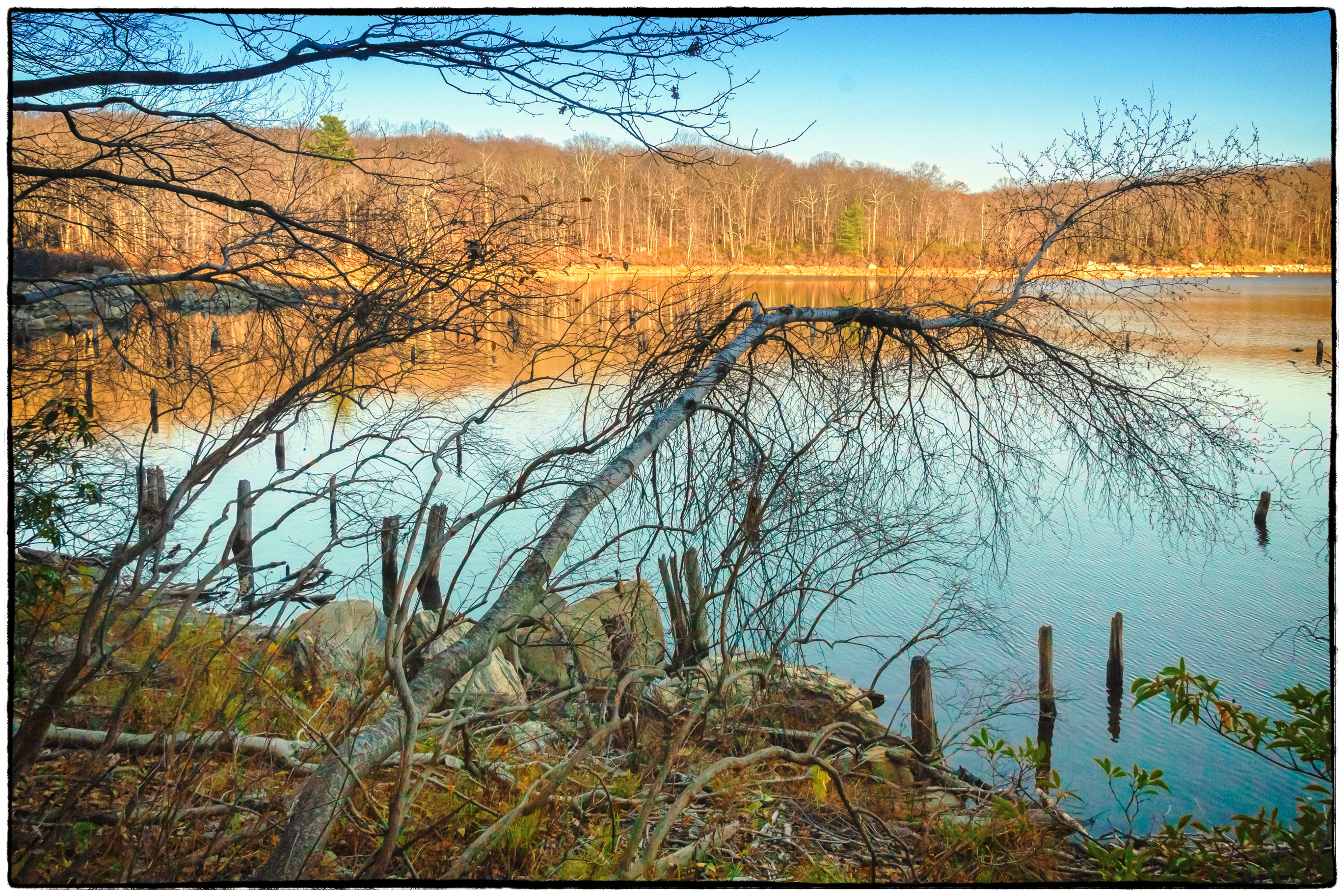 I’m not entirely sure what these are. At first I thought they were the remains of trees in a part of the lake that had been flooded. Looking at the picture though they look a little more man made – possibly piles supporting a long gone dock or something?