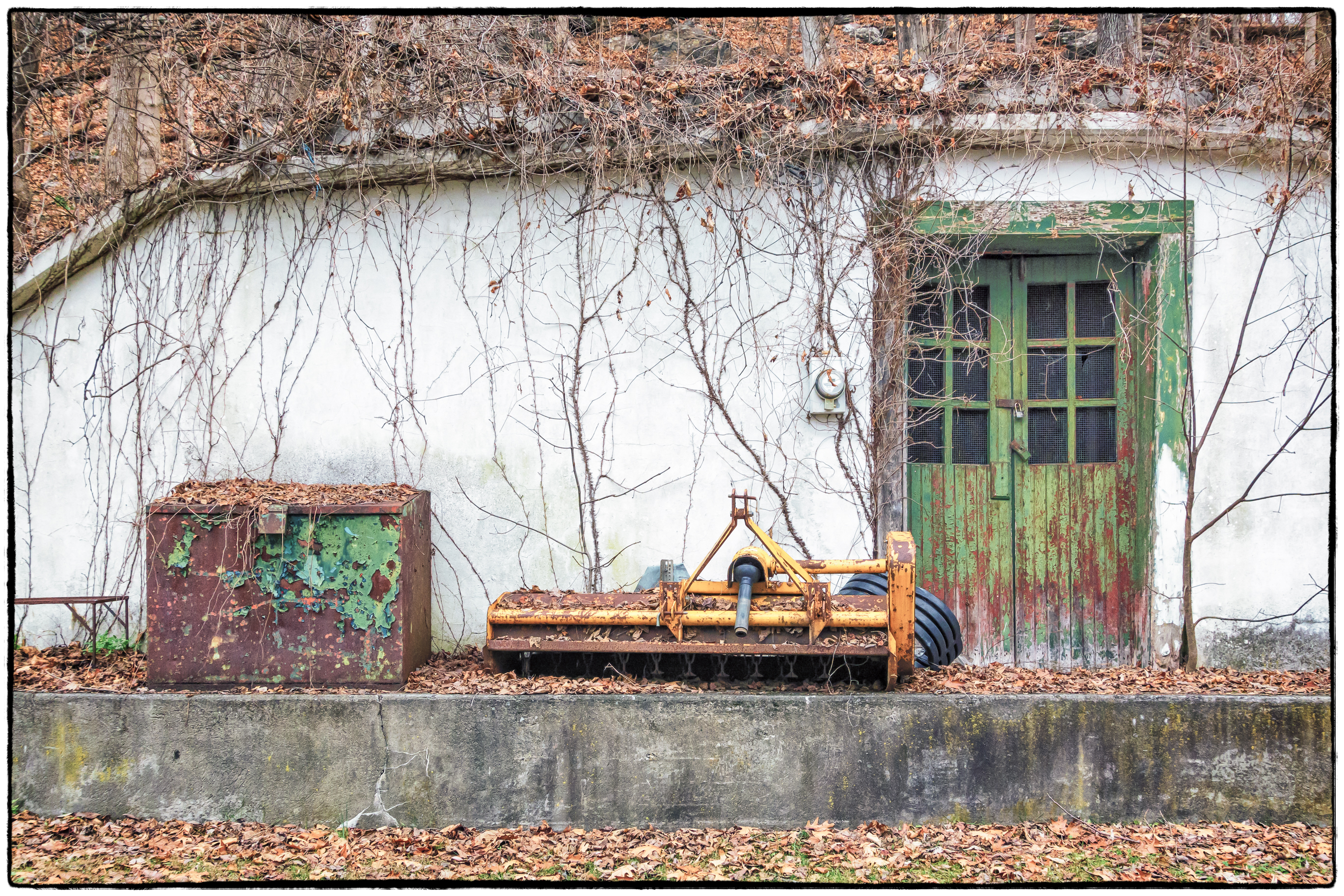 I was on my way to pick up my wife from her dance class when I realized I had some time to spare. So I decided to go down to a local park (Ryder Park) and walk the dog for a bit. We were returning to the car when I saw this dilapidated building by the side of the road. I was taking a picture when a trio of people turned up, also walking their dog. One of them said something along the lines of “So you’re taking a picture of the bunker”. I explained that I knew nothing about the building and that I was taking the picture because I liked the weathered wood; the vegetation crawling over it; the old rusting machinery etc. He than explained to me that it was called “The Bunker” because at some point it was use for storing dynamite. That, he went on, was why the road was called dynamite road. We chatted for a while an then went our separate ways. As I reached then end of the road I noticed a sign saying “Dynamite Road”.