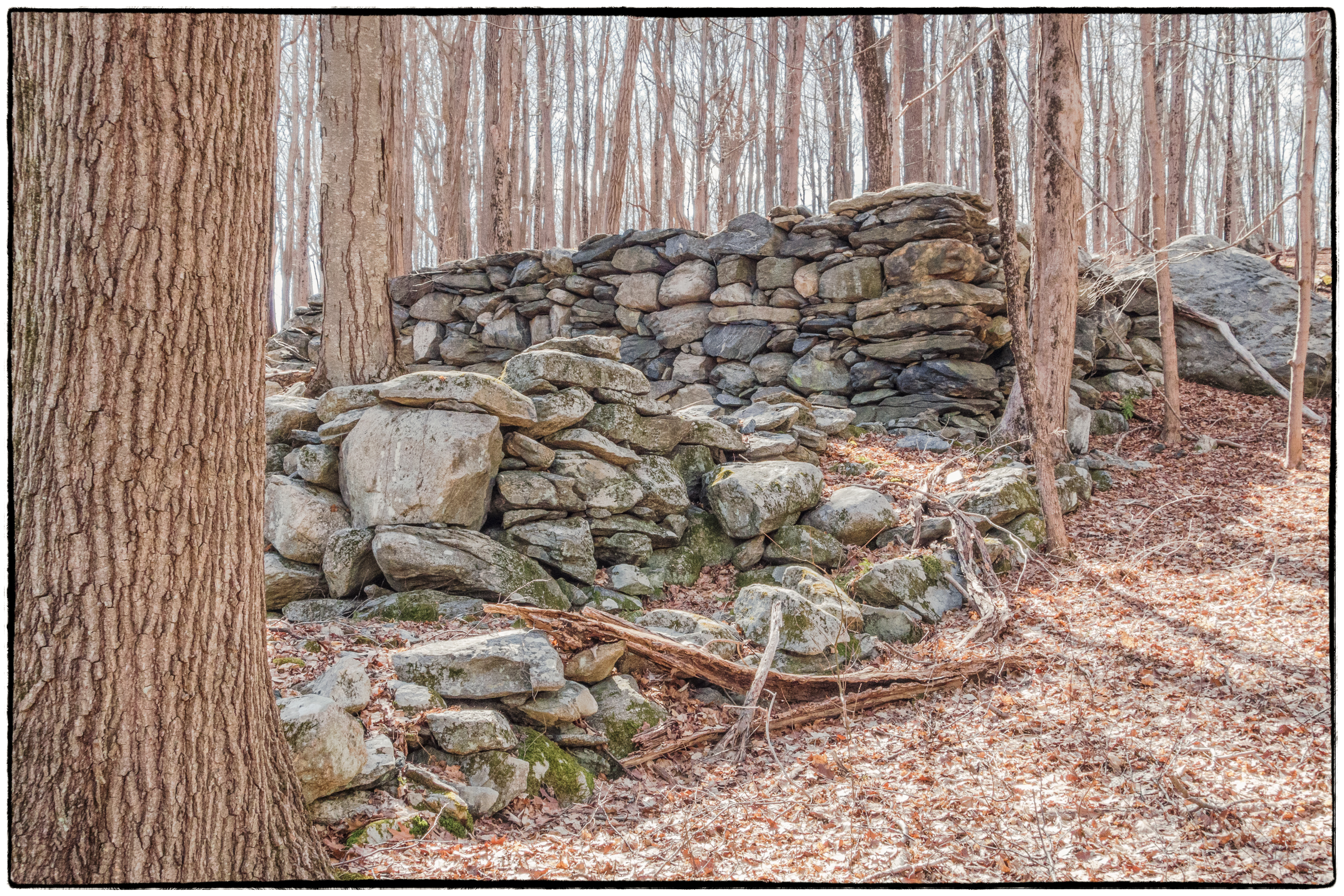 I’ve often walked along this particular trail but I’ve never noticed this ruin. I’m led to believe that not too long ago farming flourished in Putnam County. Actually ‘flourished’ is apparently the wrong word. Farming in Putnam was difficult. The soil is extremely rocky and it seems that it was always an uphill slog to make a farm work. With the growth of cities and the industrial revolution farmers abandoned their farms and you still see the ruins of them in the woods.