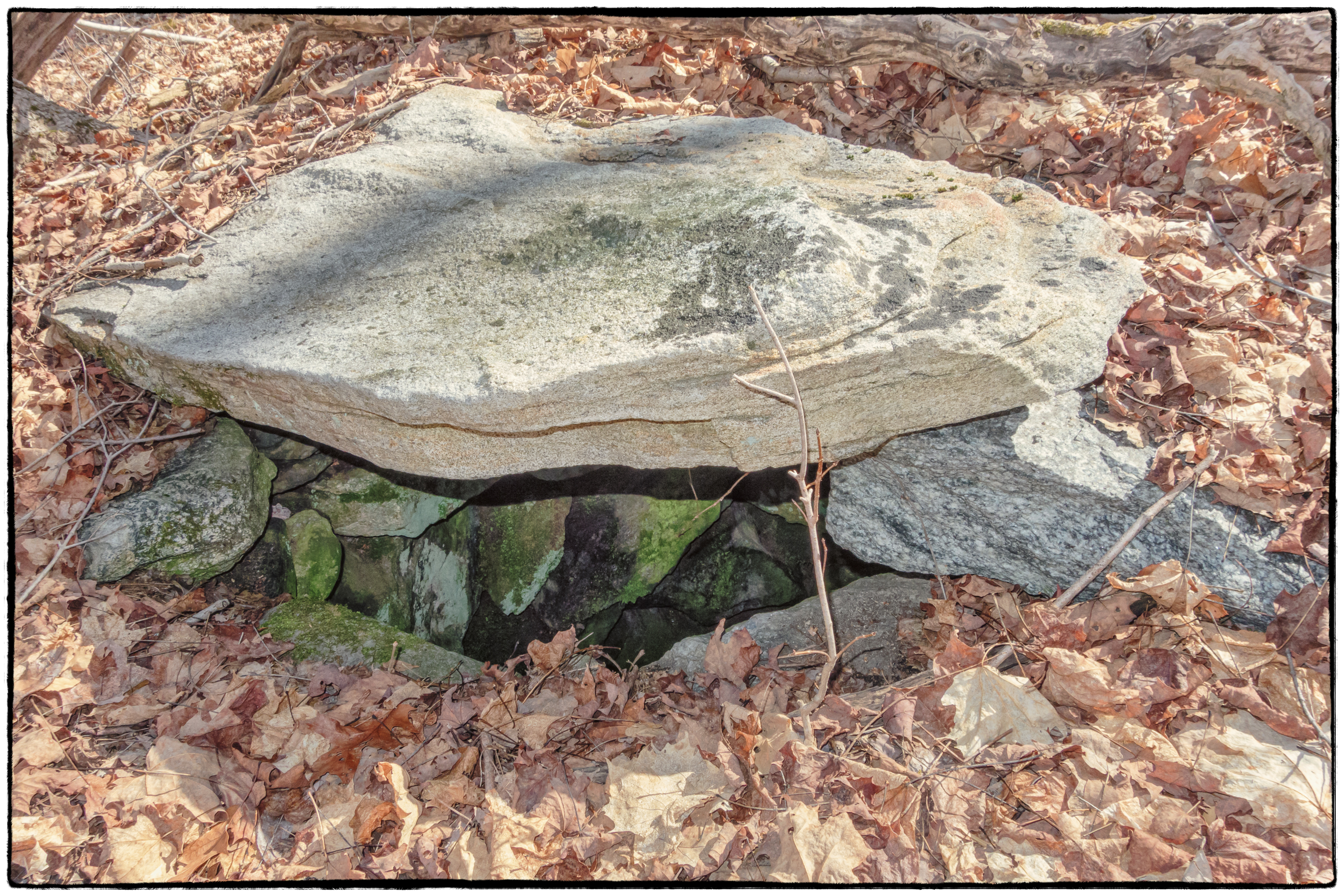 I’d taken the first set of pictures and was about continue walking when I noticed the small structure above. The rock on top seemed to form the roof over some kind of hole so I got down on my knees to see what was down there. I still couldn’t see much (too dark) so I stuck the camera inside and fired the flash. You can see the result below: