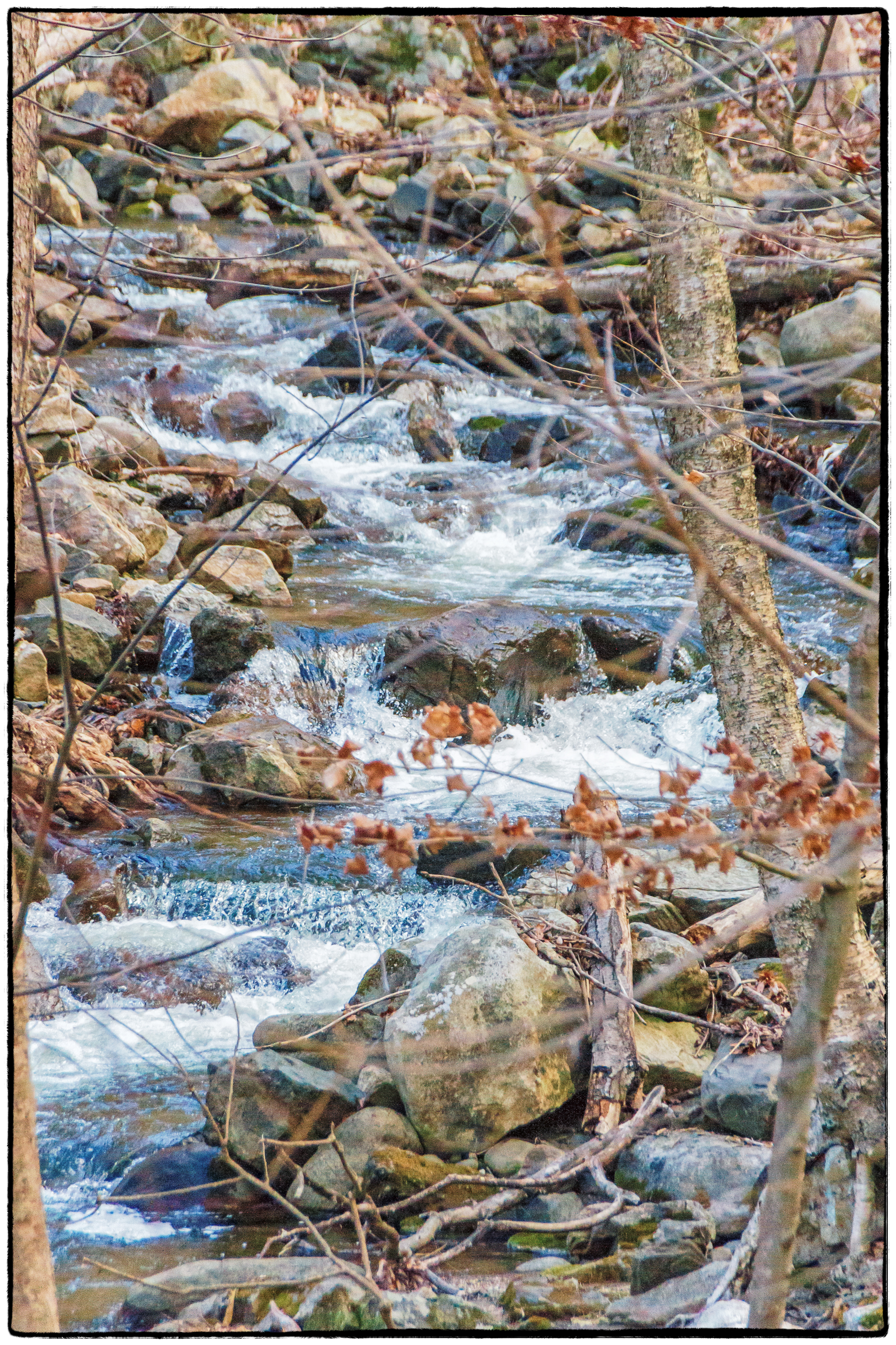 The first part of the walk follows this picturesque stream. I couldn’t find a spot that wasn’t to a greater or lesser extend obstructed by branches (see the blurred branches in the foregroud).
