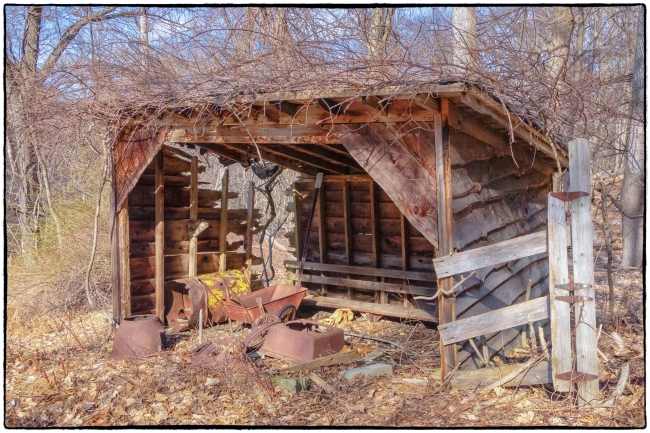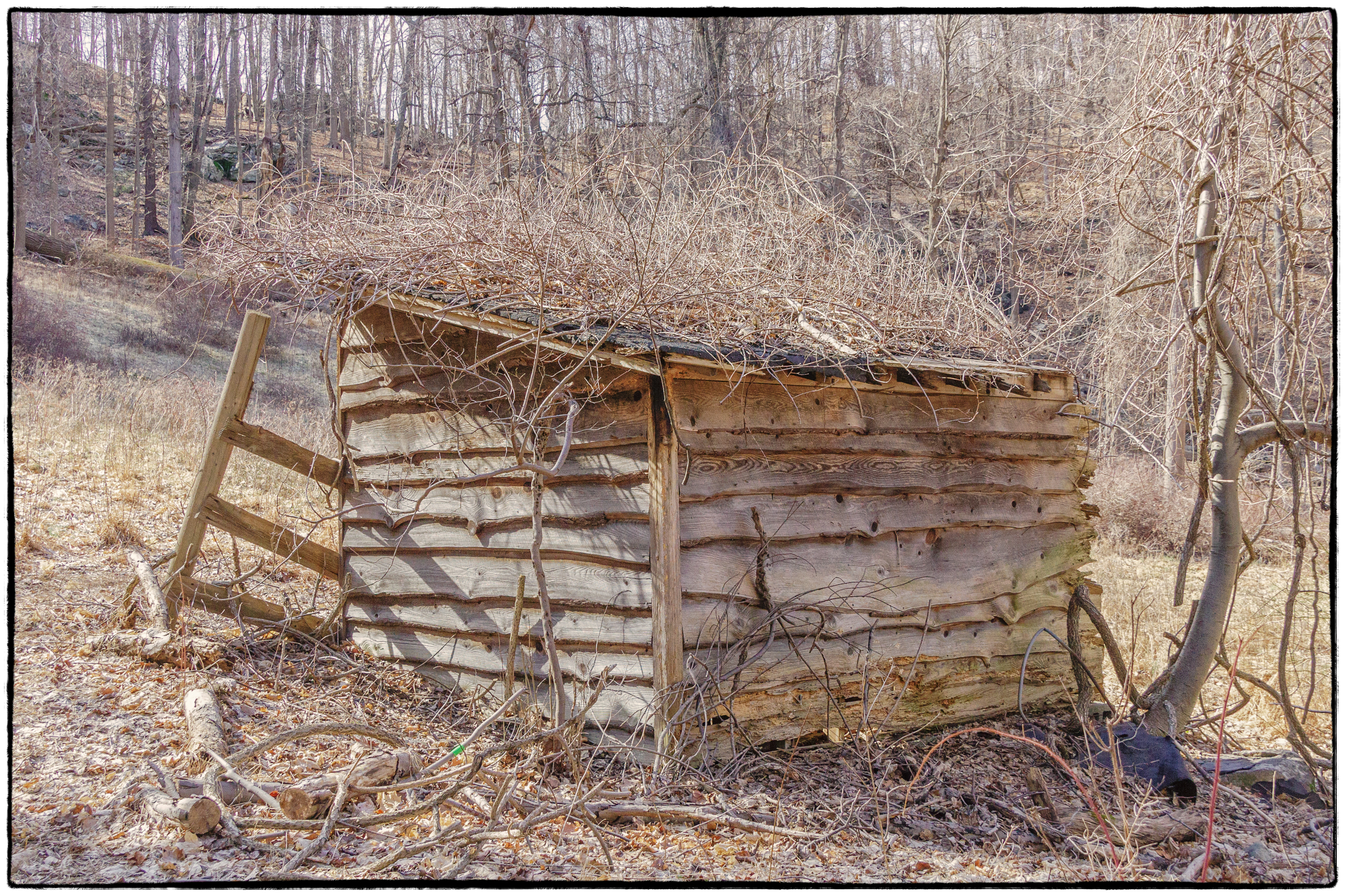 Walking along the Old Cannon Trail between the North and South Redoubts above Garrison, NY I came across this old shack. I have no idea what it was/is.