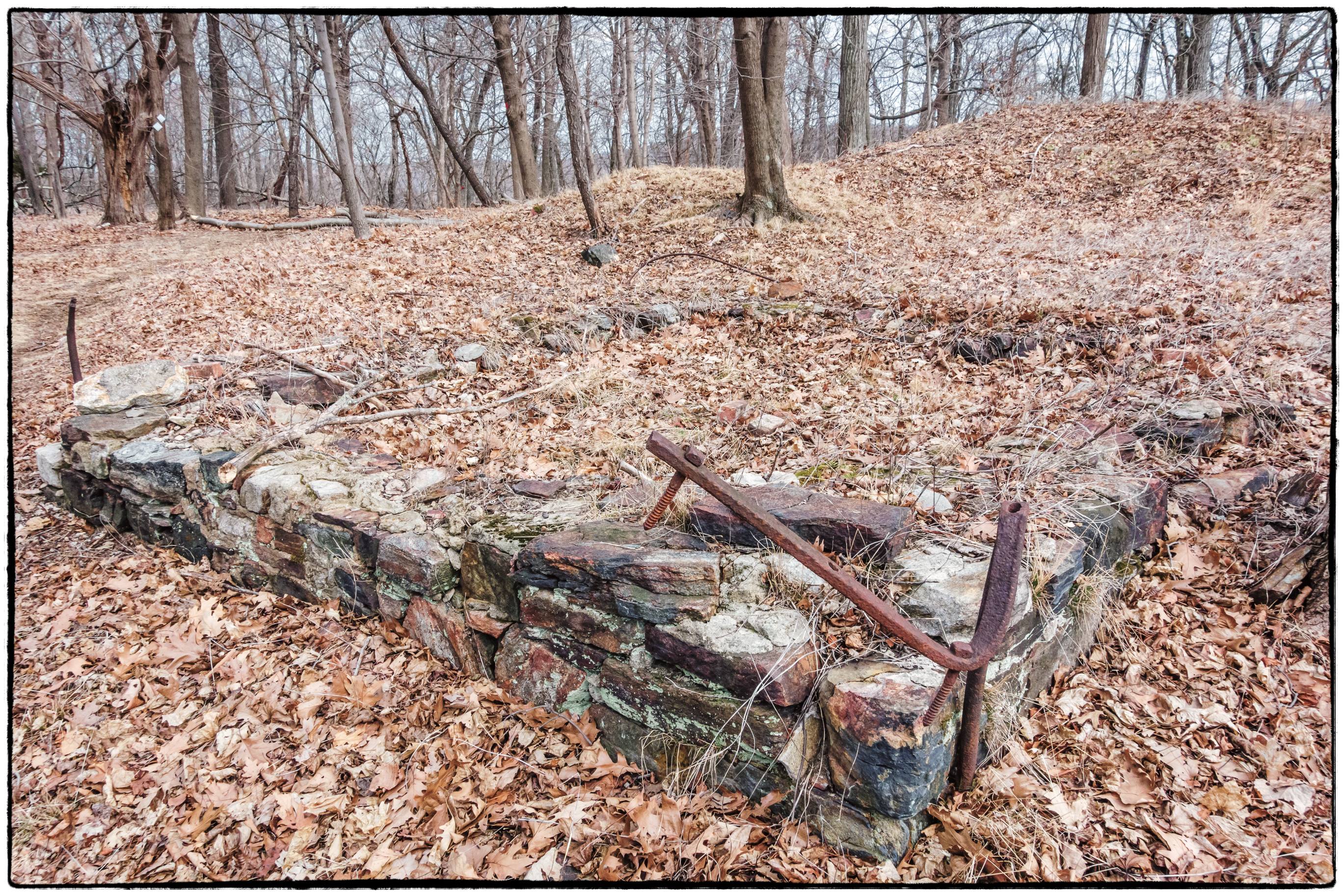 Remains of one of the batteries (I think). Somewhat out of focus. The focus locked onto the small twigs in the foreground rather than on the rocks as I’d intended. Is this because I wasn’t paying enough attention, or just that because of my deteriorating eyesight I just didn’t see them. Maybe both. In any case I’ll have to be more vigilant as this has happened to me before.