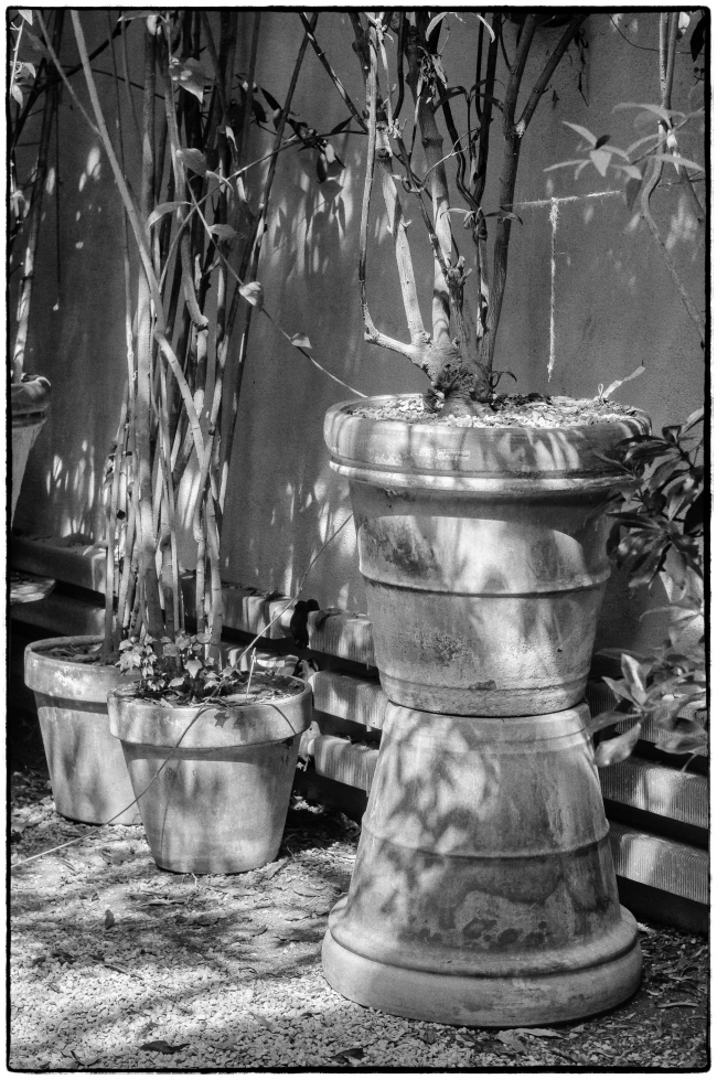 I think it was the light that appealed to me here – sort of ‘dappled’ with interesting shadows cast on the pots. I also liked the arrangement of the pots – I’d never seen plant pots placed on top of each other in the is way (i.e. with the the bottom pot inverted as a base). Maybe it’s common, but I can’t recall having seen it before.