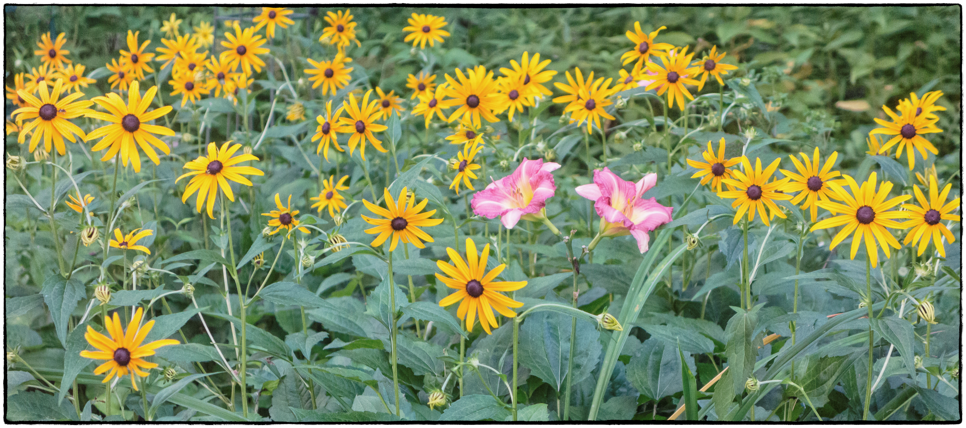 I was taken by the mass of Rudbeckia (otherwise known as coneflower or black-eyed susan) surrounding the solitary Asiatic Lily .