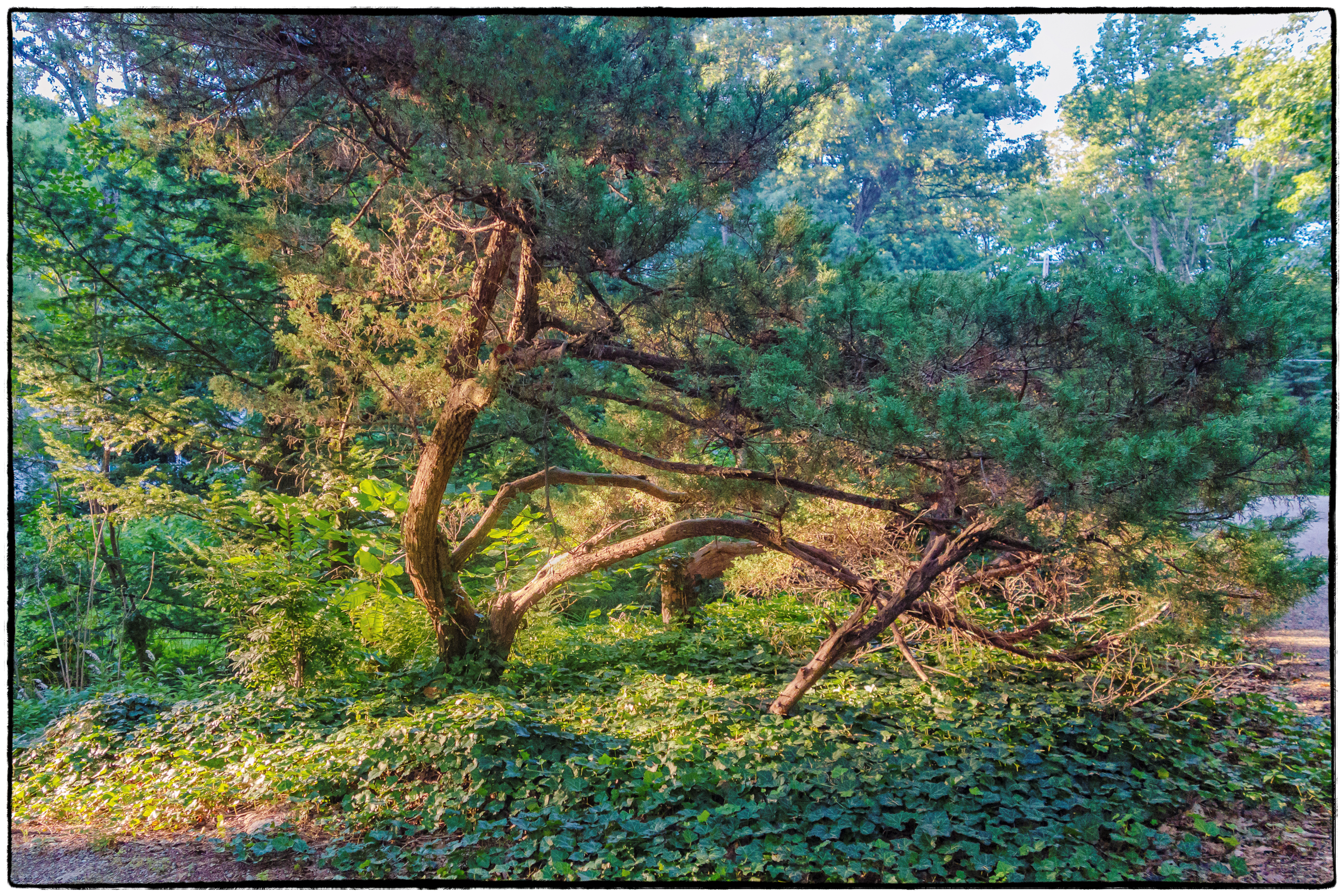 I made this picture around 7:00pm on July 26, 2016. The roads around the lake were mostly covered in shadow, but the odd beam of light shone through from time to time – in this case picking out this juniper.