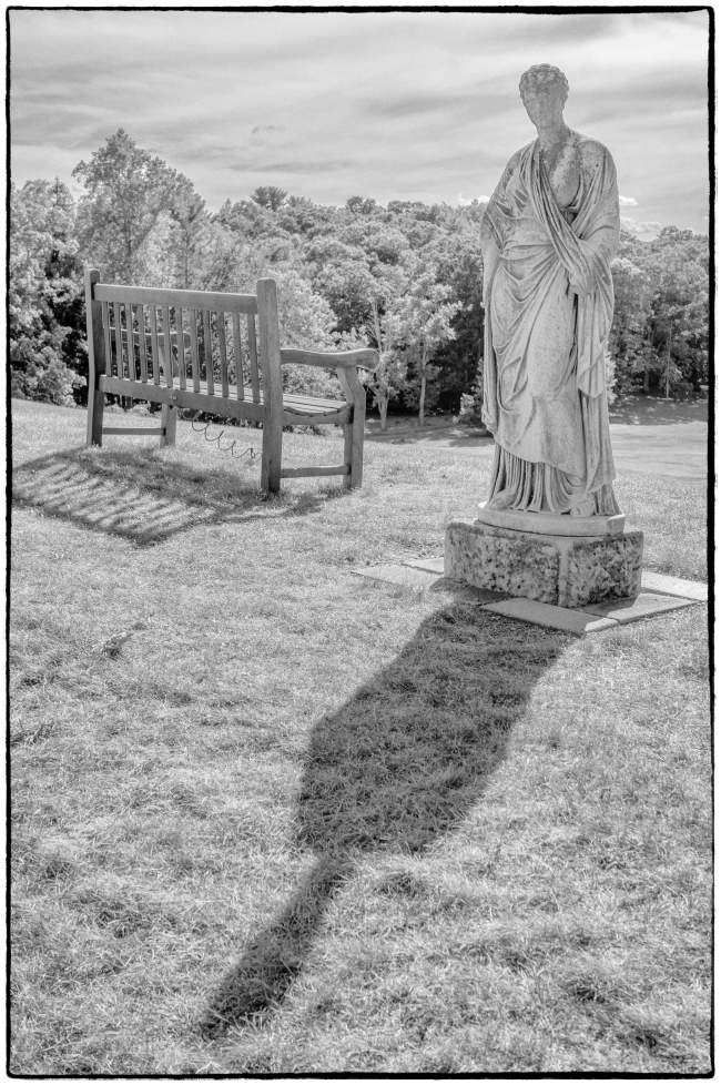 Taken on the grounds of a nearby mansion. I liked the juxtaposition of the quite new looking bench and the obviously much older statue. The somewhat eroded statue made me think about the passage of time and the way they stand isolated in this bucolic setting aroused a feeling of loneliness (this statement is a little misleading. It’s true for the picture, but not for the reality. This grouping actually stands quite close to the large mansion. So it’s not as isolated as the picture suggests).