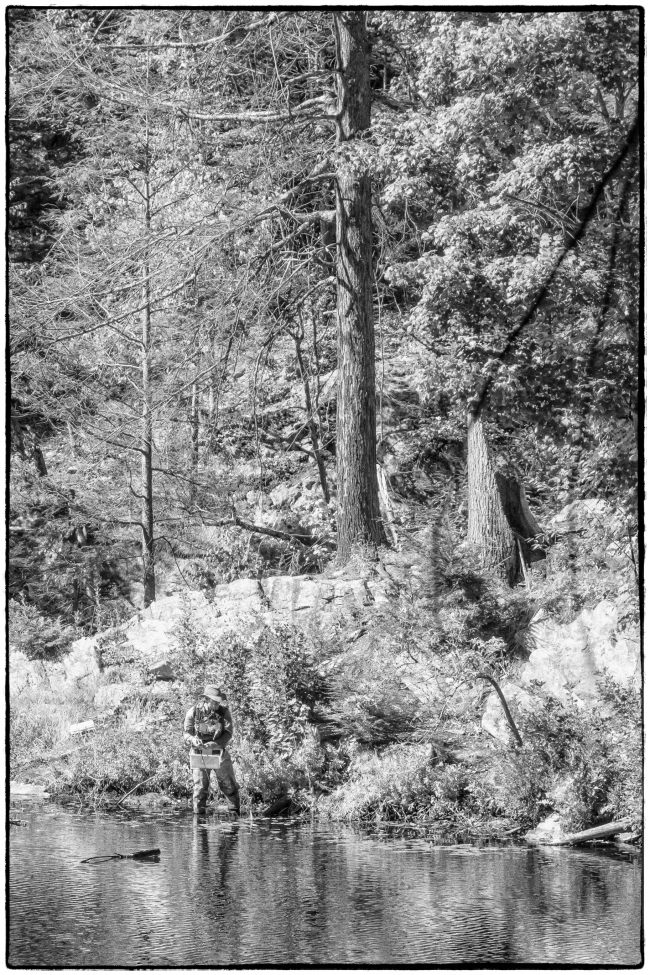 October 17, 2016 by Howard Dale This was the only person I saw during a recent three hour walk. I liked the smallness of the figure compared to the height of the trees and the large boulders.