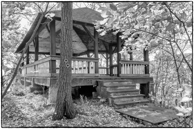 I was at a bit of a loss as to what to say about this gazebo, other than that it is a pleasant spot to break your walk, sit, and look out over the river.