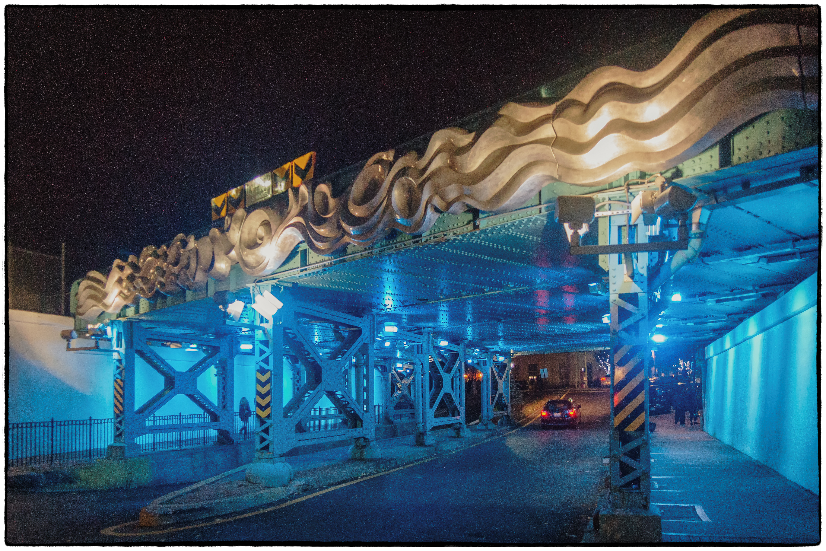 Taken by the Ferry Terminal near to Yonkers Metro North station after we returned from a cruise on the Hudson. I was attracted to the bright blue color and the wavy decoration.