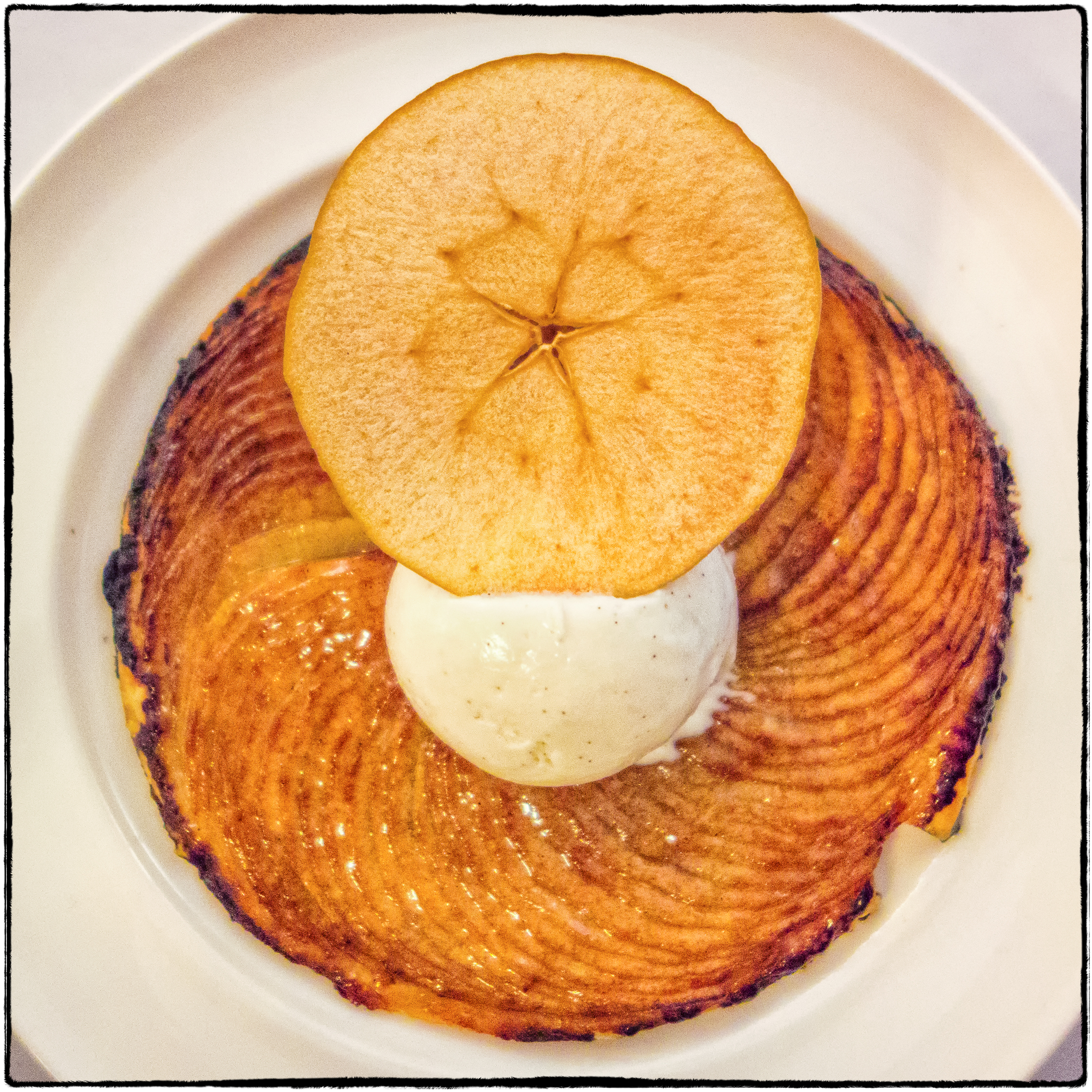 I also liked the contrast in textures: the smooth plate; the less smooth ice cream; the even less smooth dried apple (?) and the not at all smooth tart.