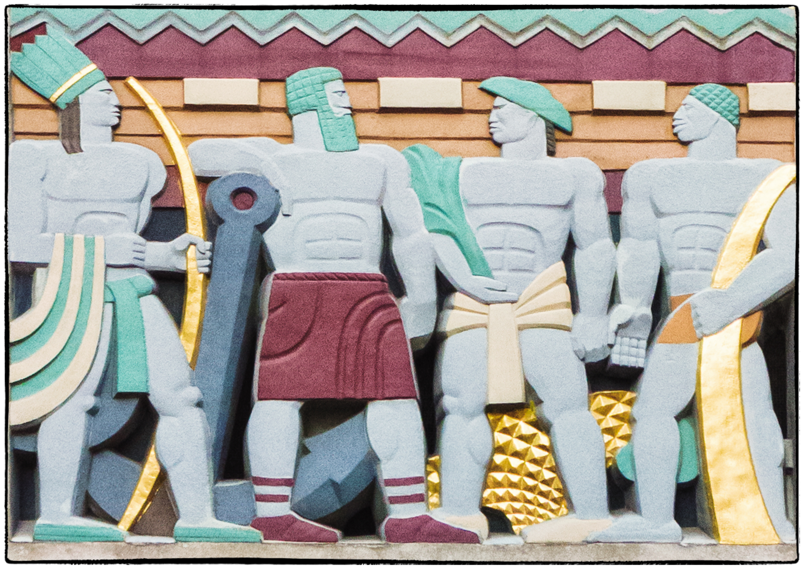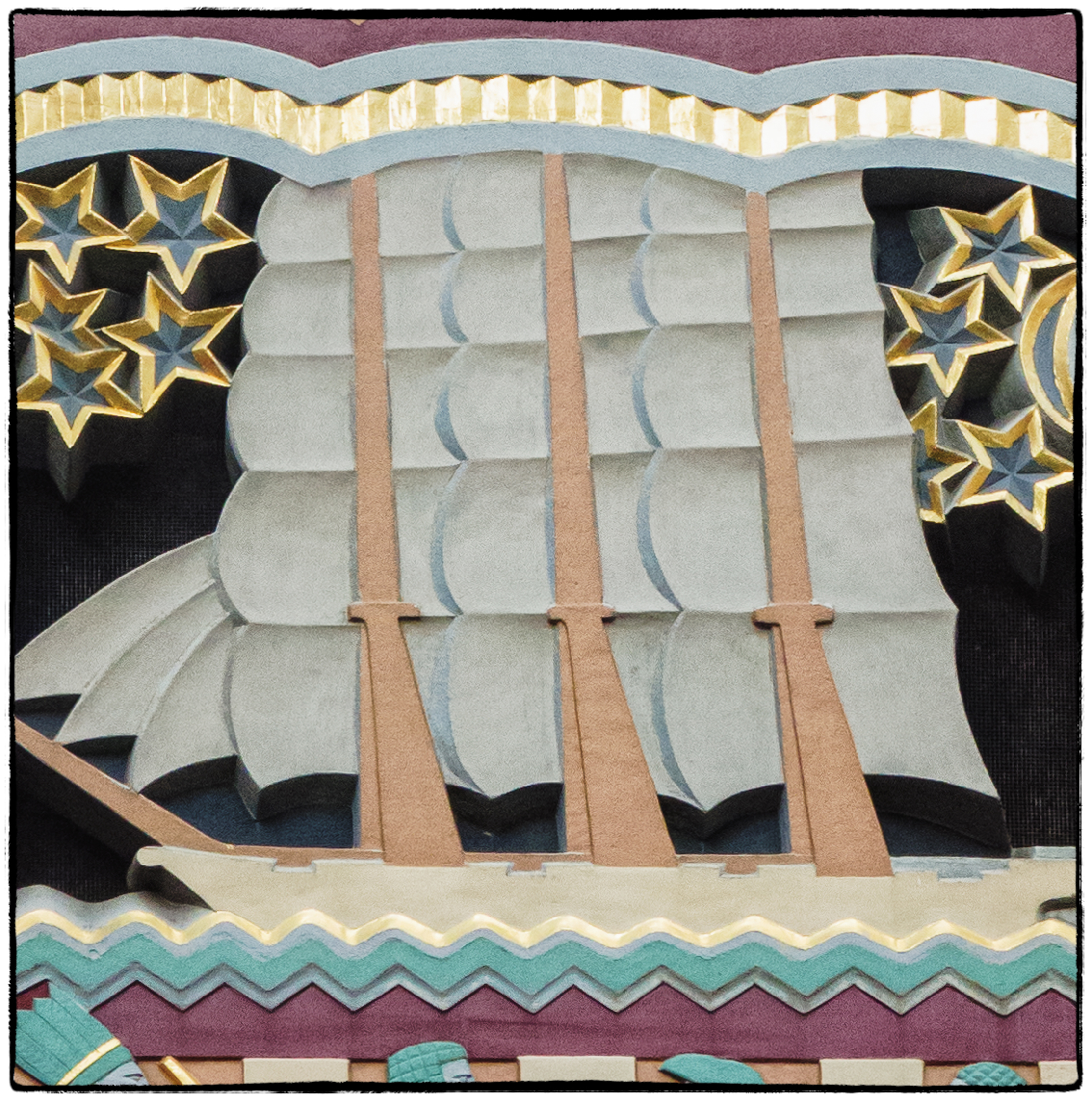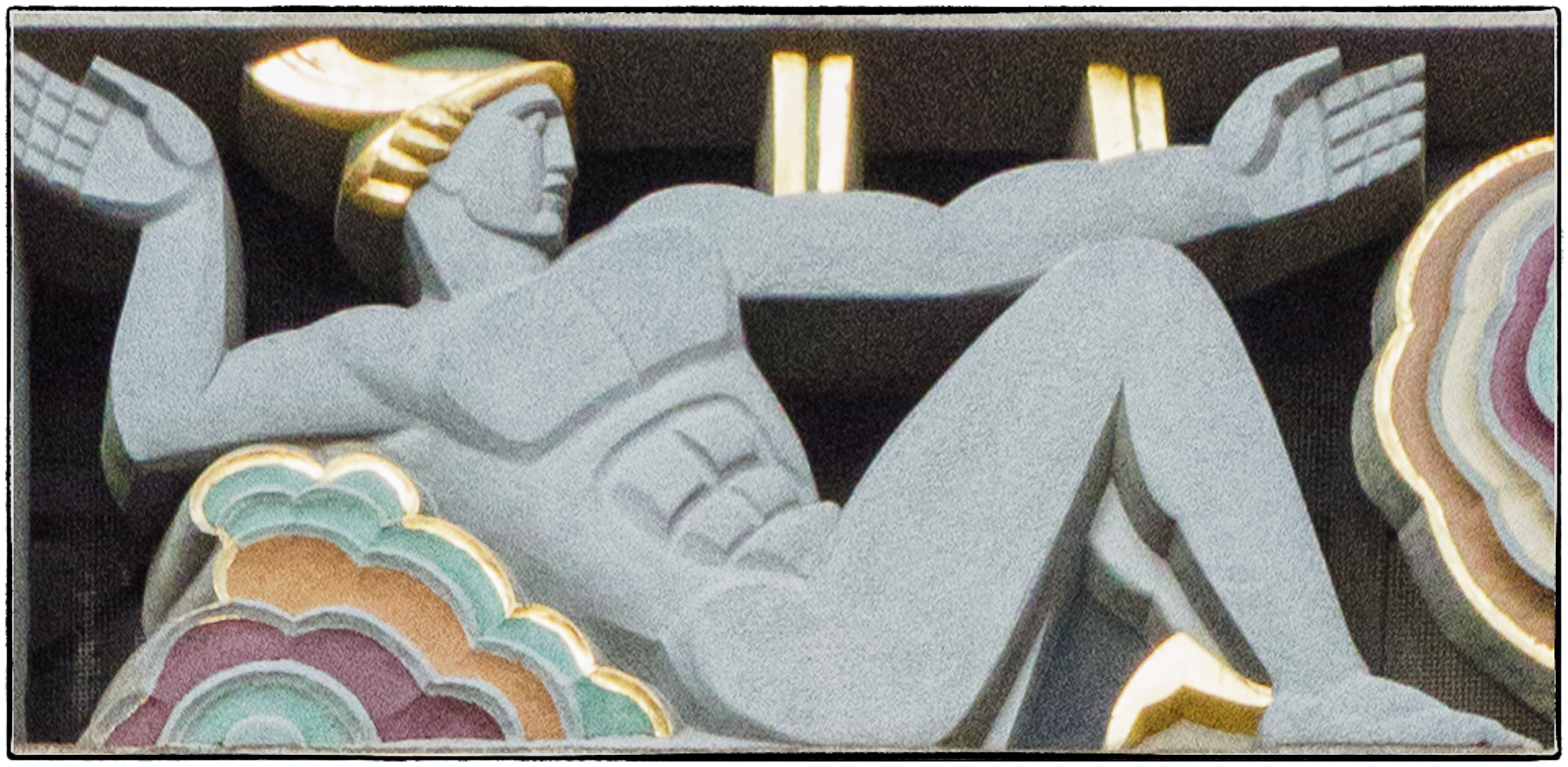 As we were leaving I noticed the lovely art deco facade of the building: The International Building. According to an entry in Flickr: