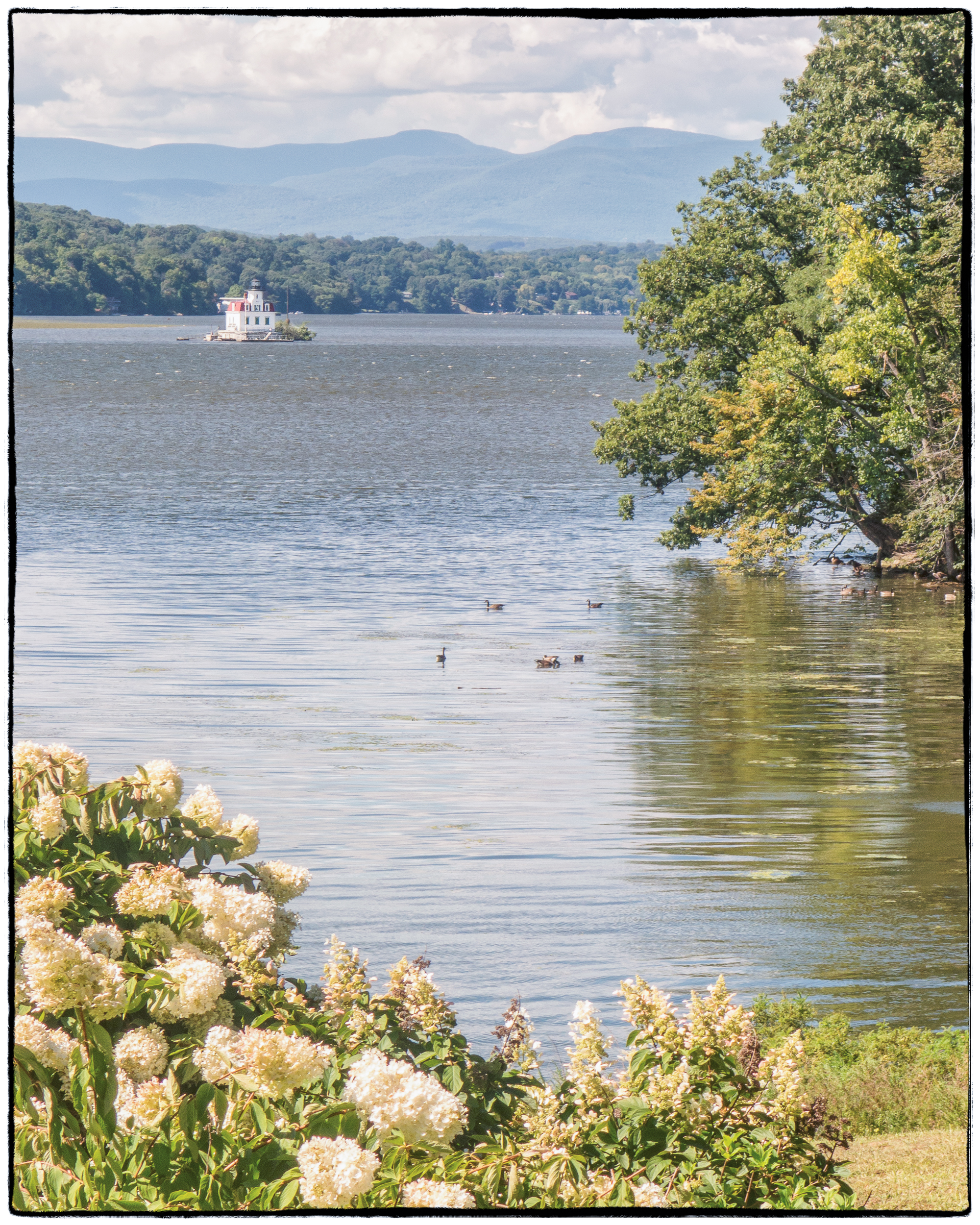 Esopus Meadows Lighthouse and the Catskills in the background.