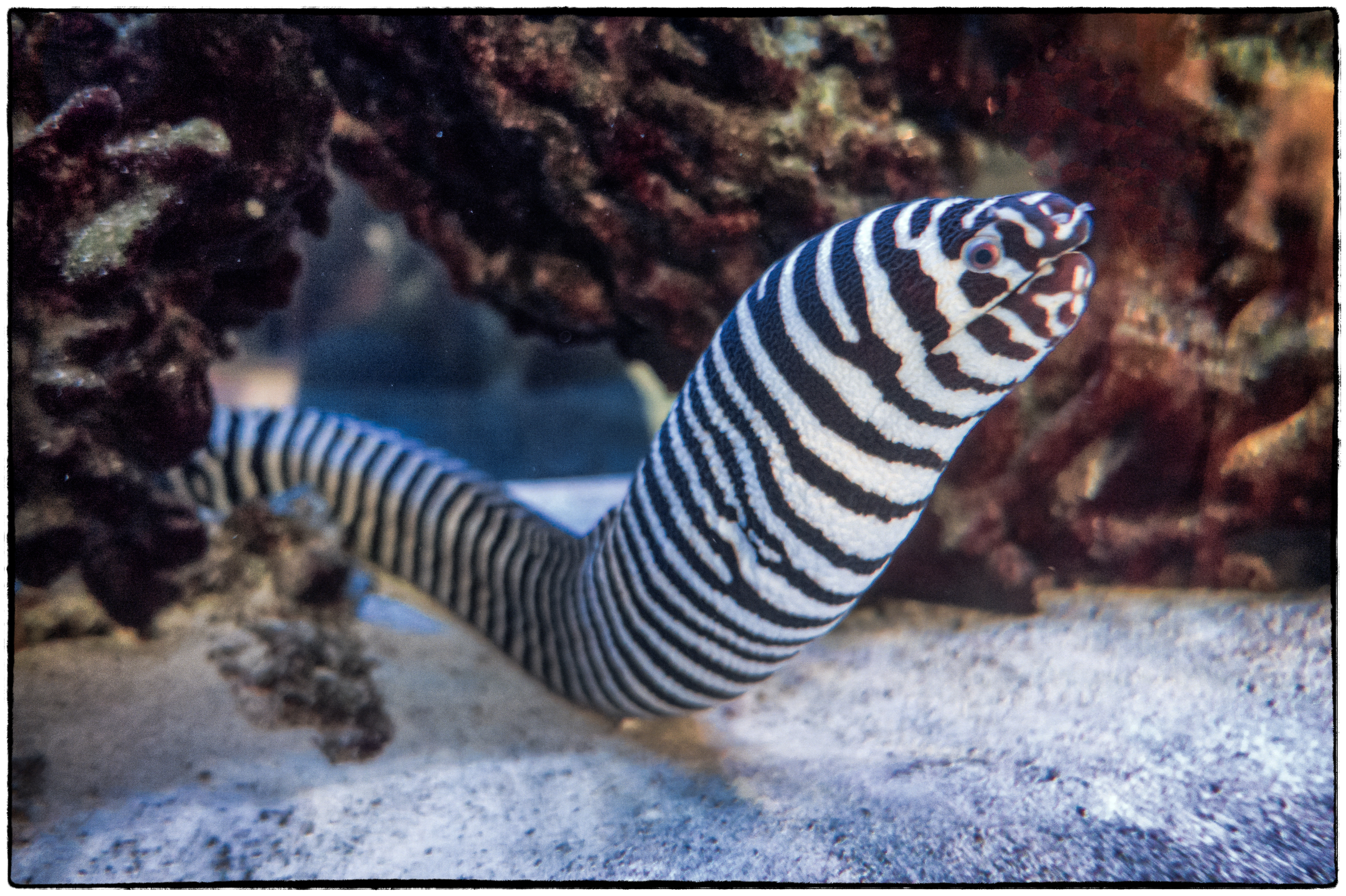When I got home I browsed around a bit on the internet to see if I could find what it is. The nearest thing to it that I could find was a Zebra Moray Eel. FactZoo.com describes it as follows: