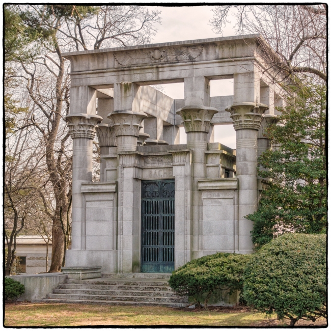 After the nearby Belmont Mausoleum we turn to another replica (of Trajan’s Kiosk), but this time not full scale: the Jules Bache (November 9, 1861 – March 24, 1944) mausoleum.