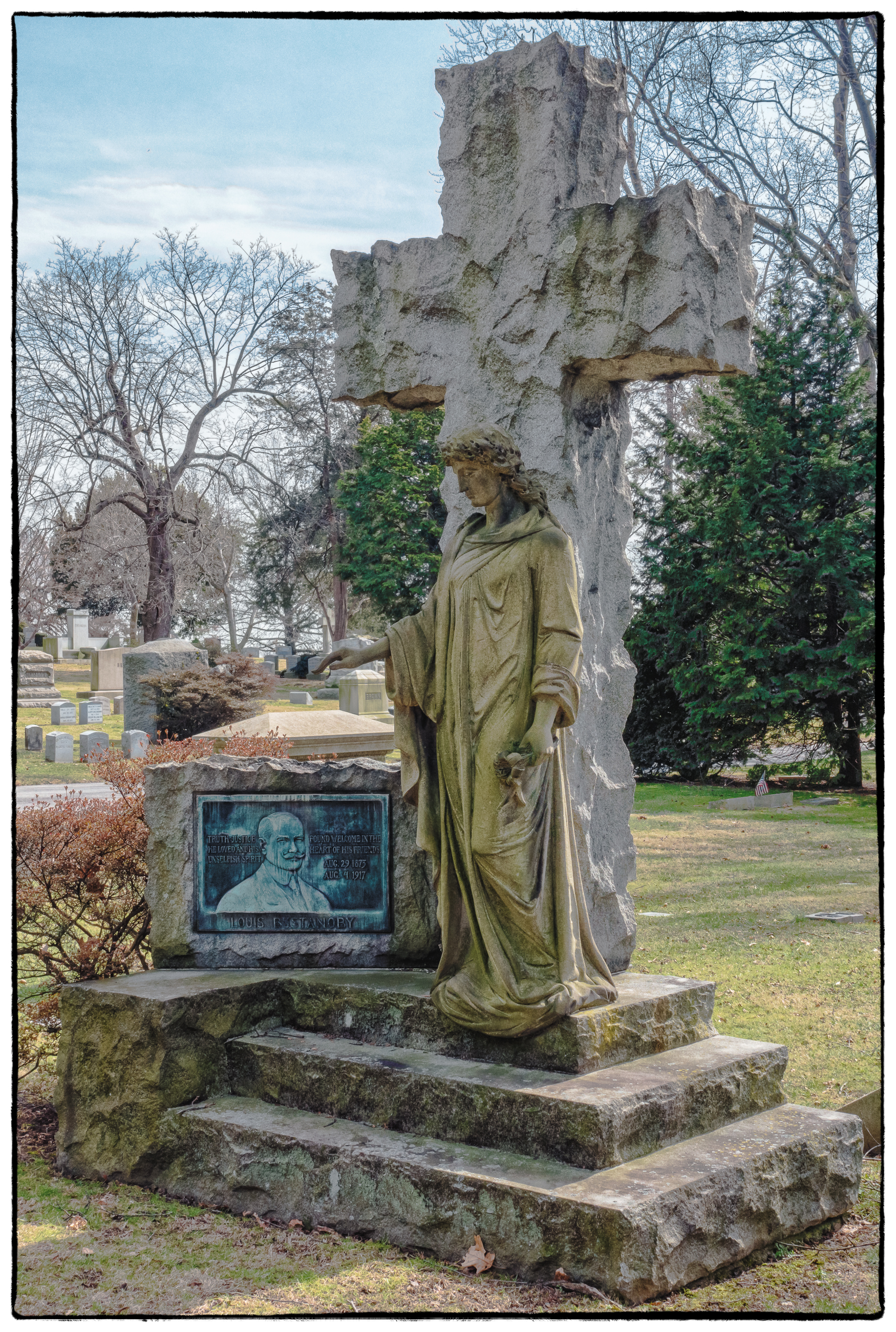 We were wandering around trying to find Irving Berlin’s grave when I came across this monument. What caught my attention was the combination of a rough hewn cross; a standing figure; and a metal (brass?) plaque bearing Mr. Bustanoby’s likeness and the words: TRUTH JUSTICE HE LOVED AND HIS UNSELFISH SPIRIT FOUND WELCOME IN THE HEART OF HIS FRIENDS. AUG 29 1873 – AUG 4 1917.