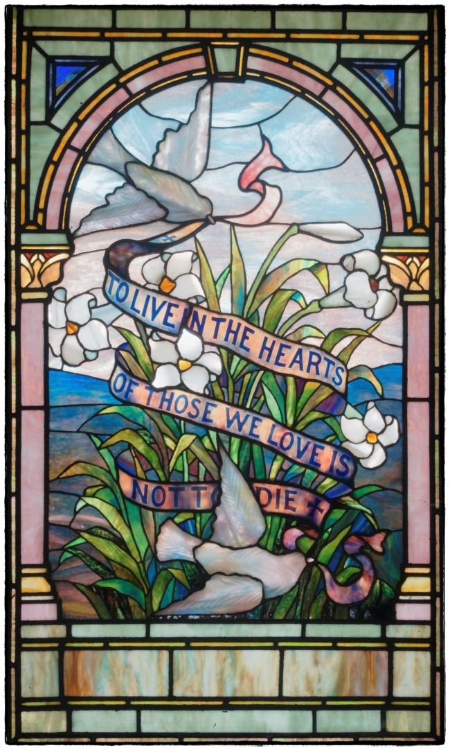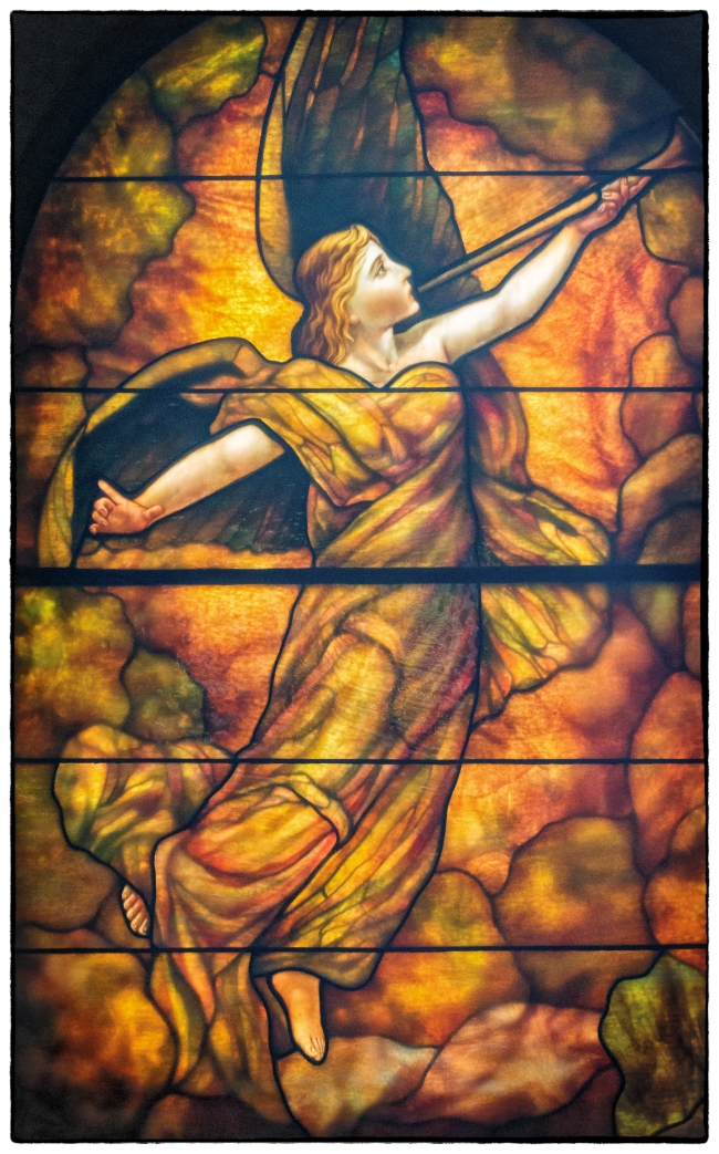 Many of the mausoleums at Woodlawn have stained glass, but regrettably much of it is only visible from the inside (e.g. when mausoleums are opened up for tours). Here are a few that could be seen through mausoleum doors. Unfortunately (with the exception of the one above, which I know is from the F.W. Woolworth Mausoleum) I can’t recall to which monuments these windows belonged (and of course I forgot to write this information down).