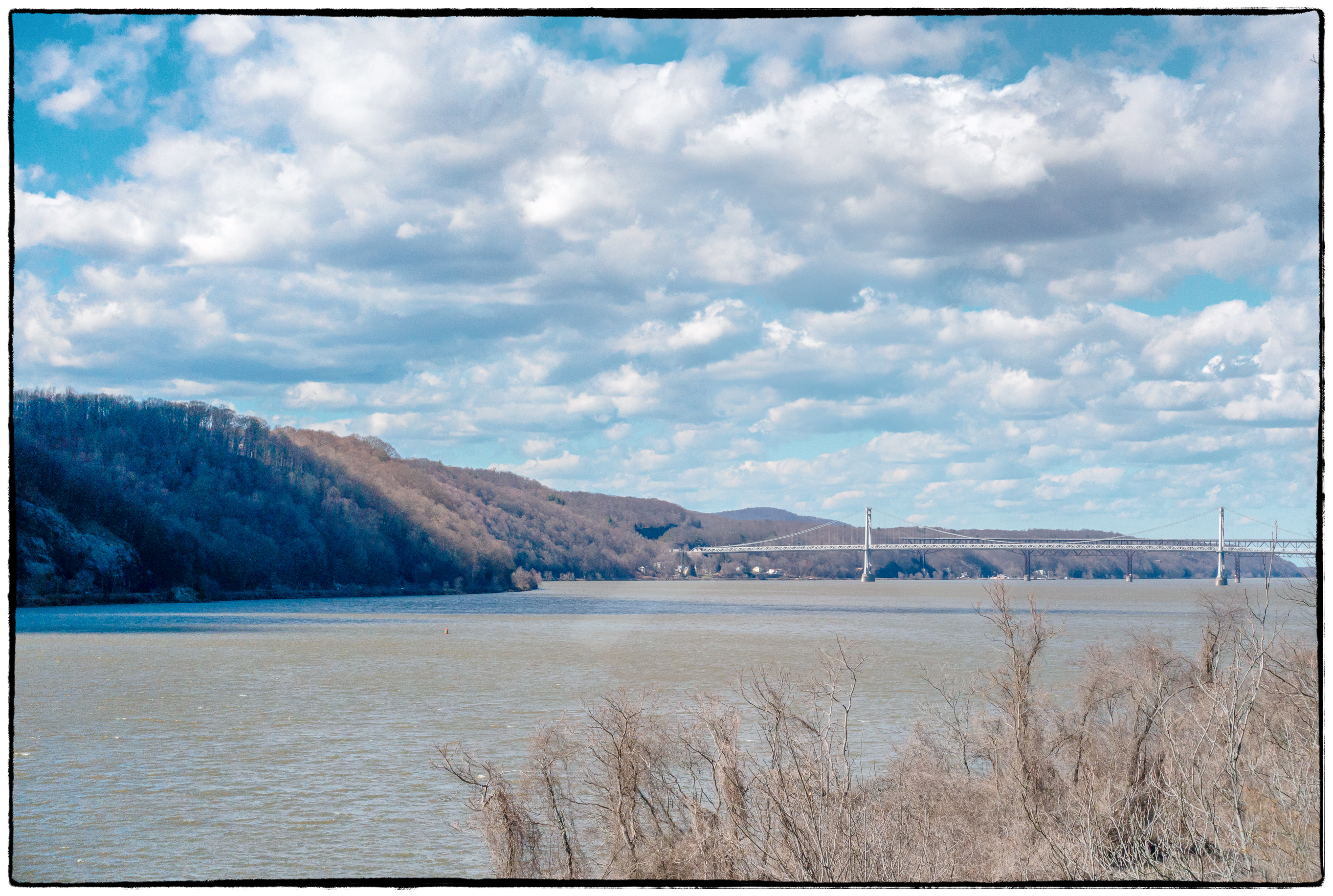 From the pet cemeteries, the carriage house, the barn and the lake the Lane Path took us eventually to the Hudson River. This is the view looking North with the Mid Hudson Bridge (officially the Franklin Delano Roosevelt Mid-Hudson Bridge) in the background. When first proposed in 1923 there were no fixed crossings of the Hudson River south of Albany. Blue Point can be seen on the other side of the river.