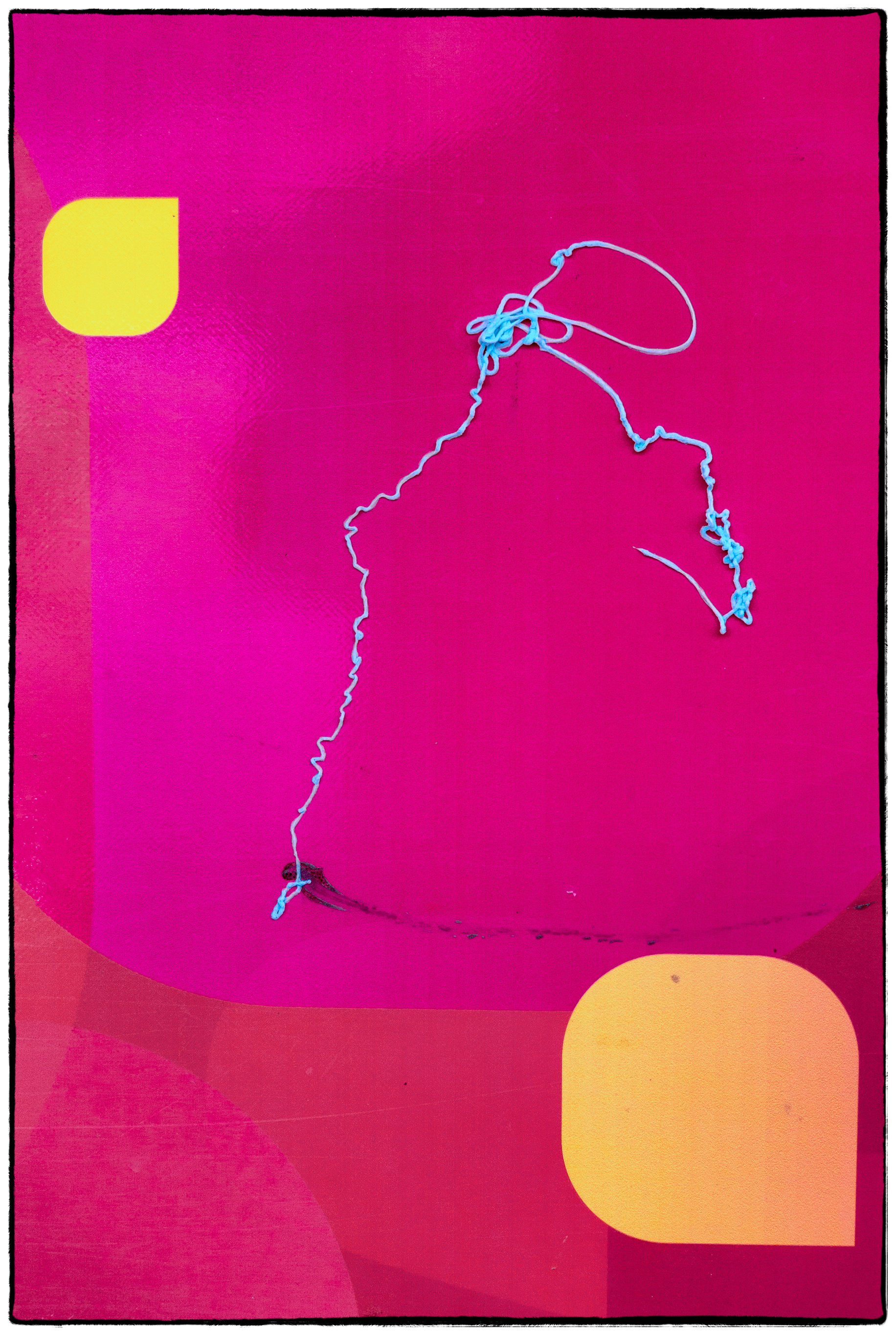I liked the bright blue color and the contrast between the regular geometric shapes and the more organic pattern left by the sprayed on substance.