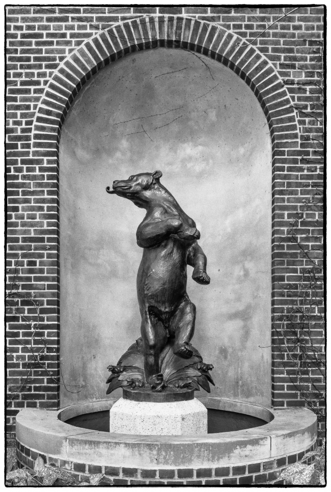 This whimsical bronze is in a niche that flanks the triple-archway that supports the Delacorte Musical Clock between the Central Park Zoo and the Children’s Zoo. The Dancing Goat is the bear’s counterpart on the southern side if the Zoo.