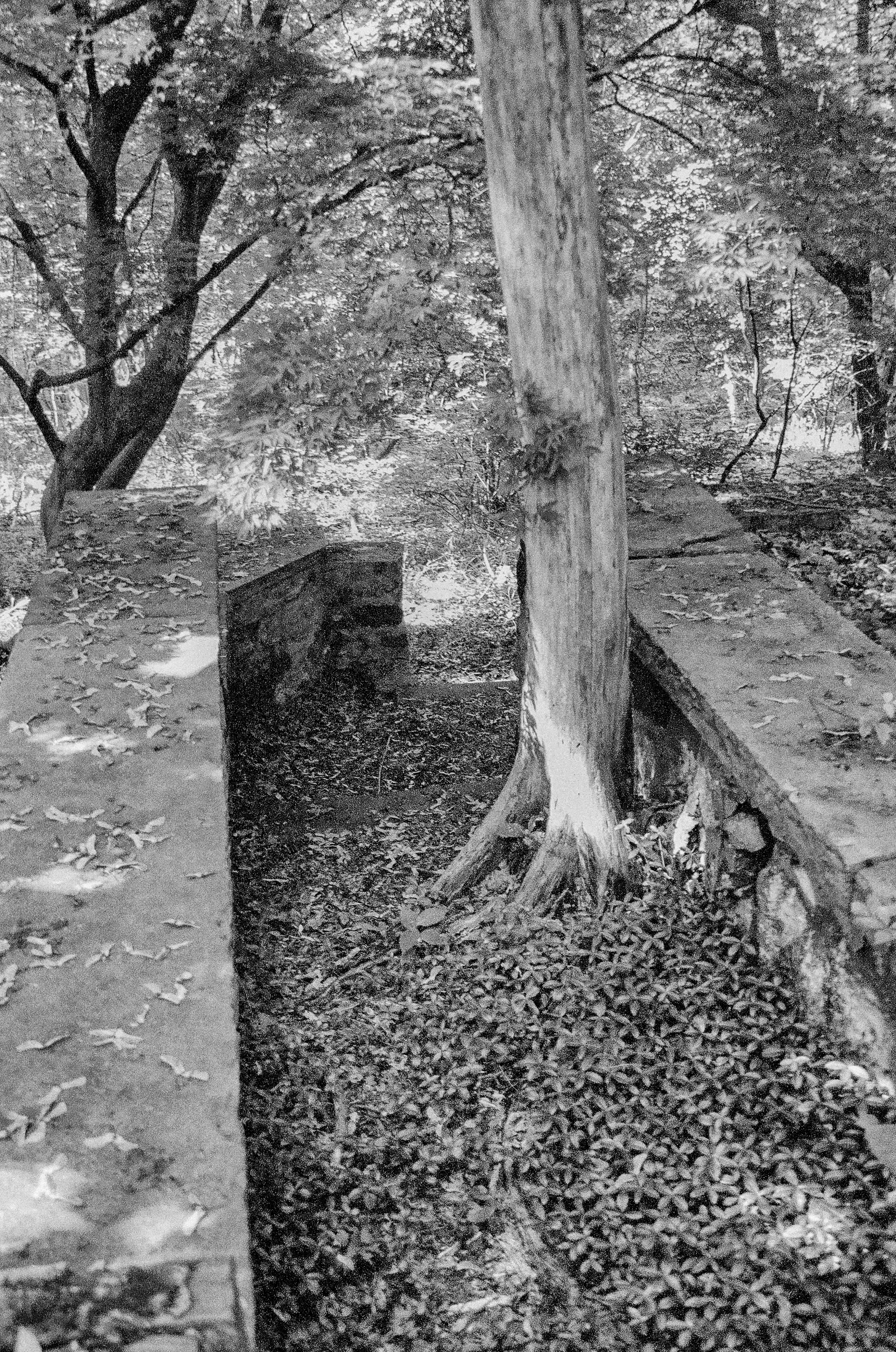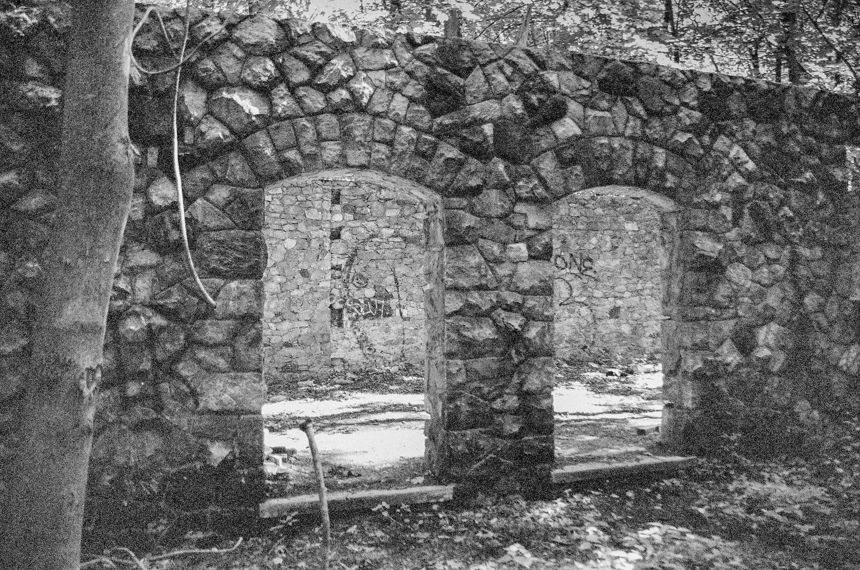 I’d read that there were some interesting ruins and for once I managed to get up early enough to “catch the light”. This was where I made my first mistake: it was much darker under the leafy canopy than I had anticipated. The light was also very contrasty. I’d loaded the camera with an old (I don’t know what effect the age of the film might have had on the results) roll of BW400CN C-41 black and white film. My second mistake (related to the first mistake) was not to have taken something to stabilize the camera (e.g. a tripod or monopod). My third mistake was stubbornly taking along the lens that came with the camera: a Minolta 28-100 AF lens f3.5 (22)-f5.6 D lens. I imagine that this was the camera’s original kit lens and that it’s quality is probably mediocre at best. So the end result was that I was trying to take mostly landscape type pictures, most of which required a lot of depth of field while hand holding the camera at shutter speeds that were way too slow.