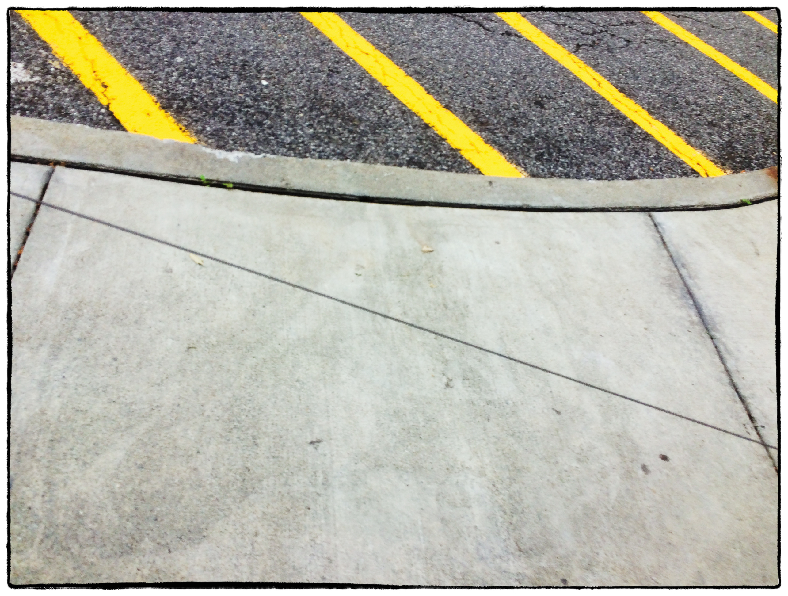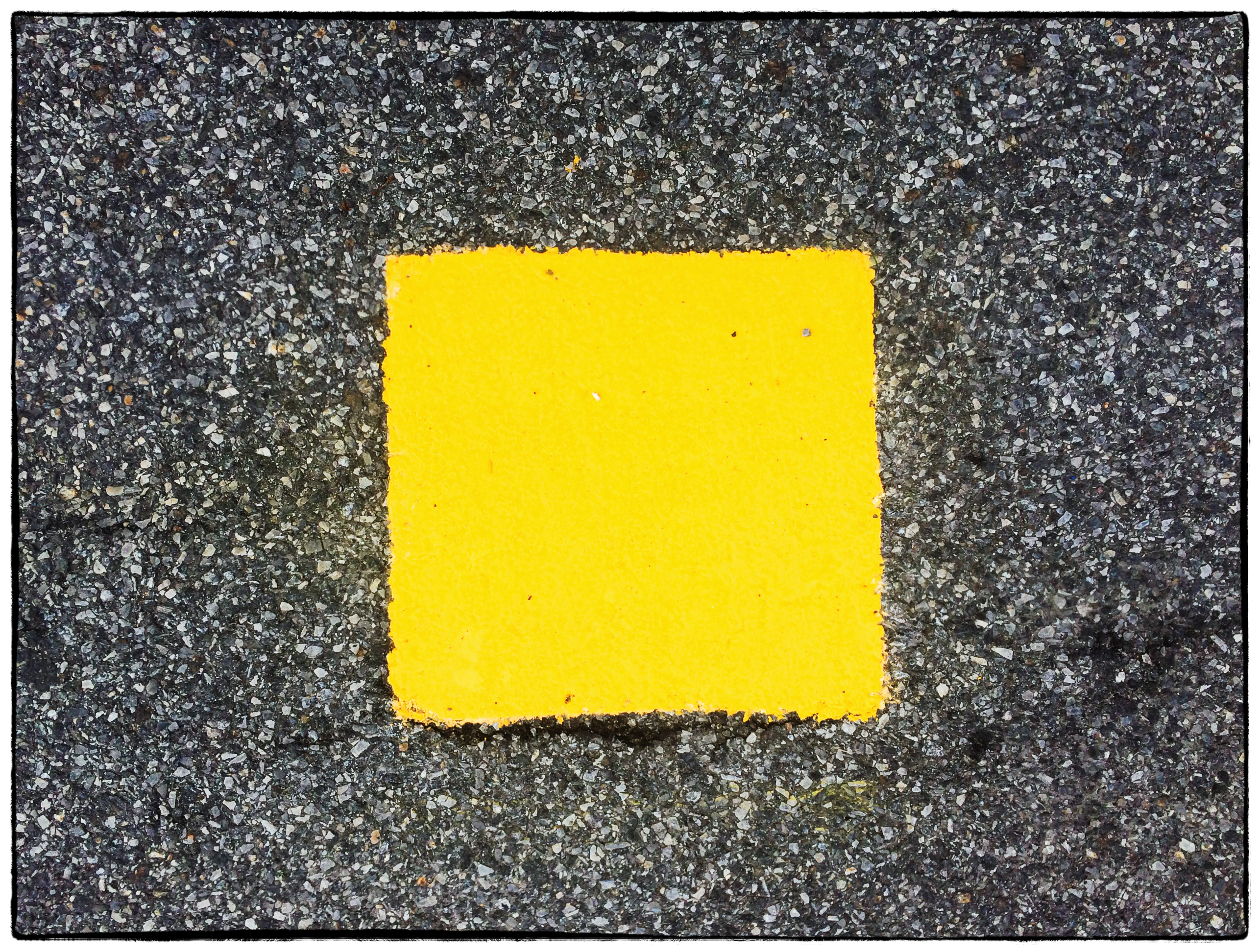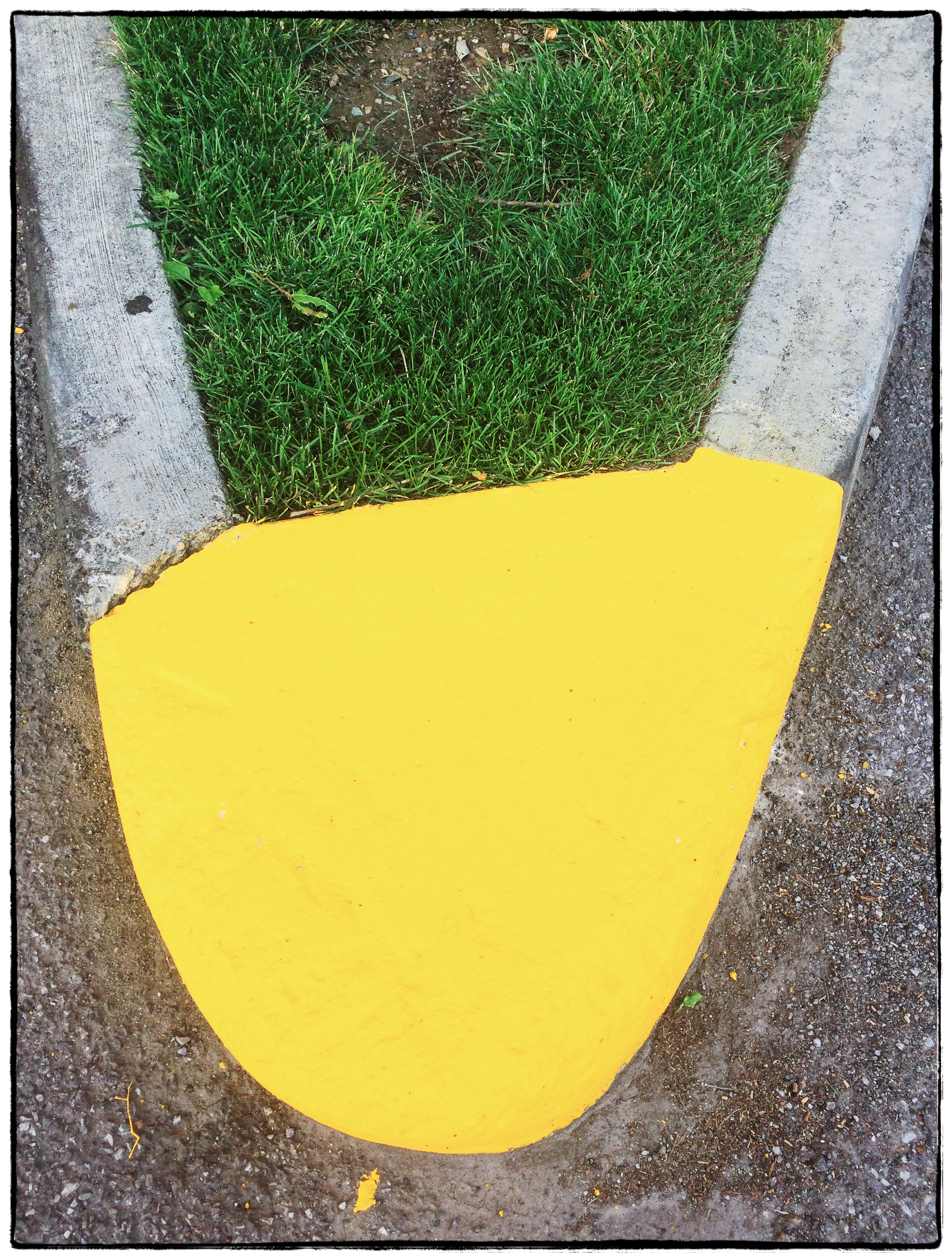 While waiting for my wife to finish her dance class I took the dog for a walk around the parking lot. After a while I noticed flashes of bright yellow on the ground – lines, curves, shapes.