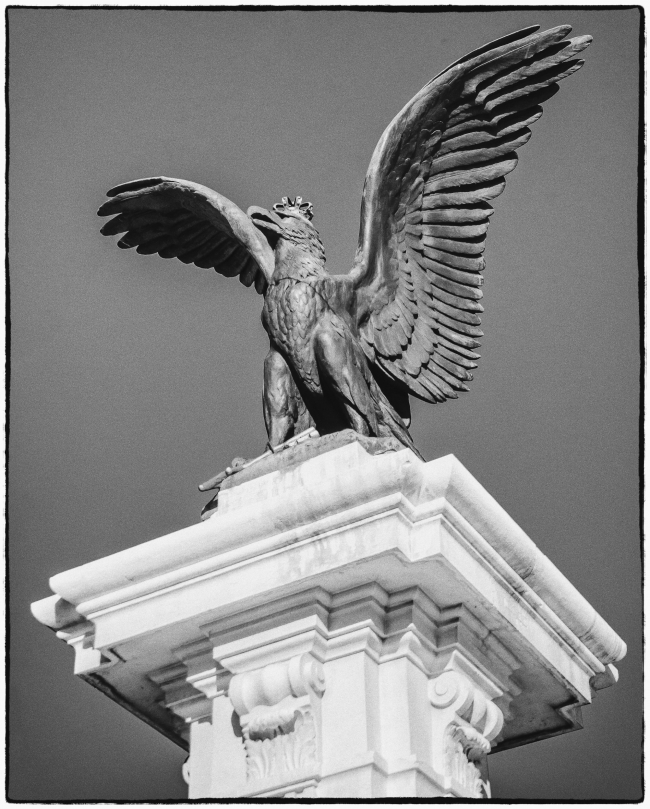 While I haven’t been able to discover who was responsible for the creation of this statue, I do know what it symbolizes. If you look closely you can see that the eagle has a crown on its head, and is clutching a key in it’s right talons. According to the Flags of the World website: