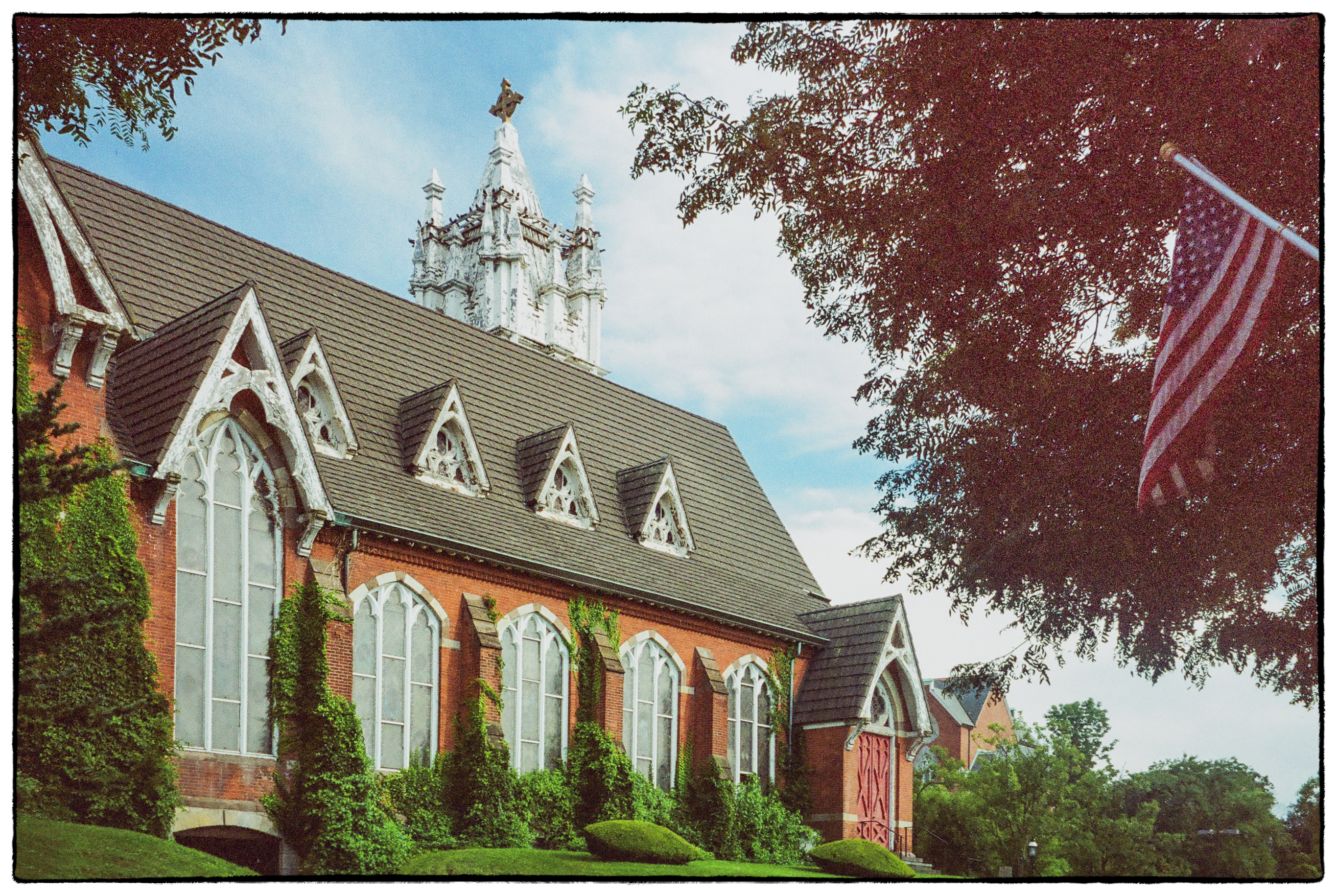 By that time the church was beginning to outgrow its original structure, and the congregation began considering a new one. Brooklyn architect J. Walsh’s Gothic Revival design, with triangles and quatrefoils representing the Trinity and the four Gospels respectively, was dedicated in 1874. It had cost $75,000 ($1.59 million in modern dollars) for local contractor John Hoff to build. The church was able to finance it purely from donations from the congregation, without taking out a mortgage.