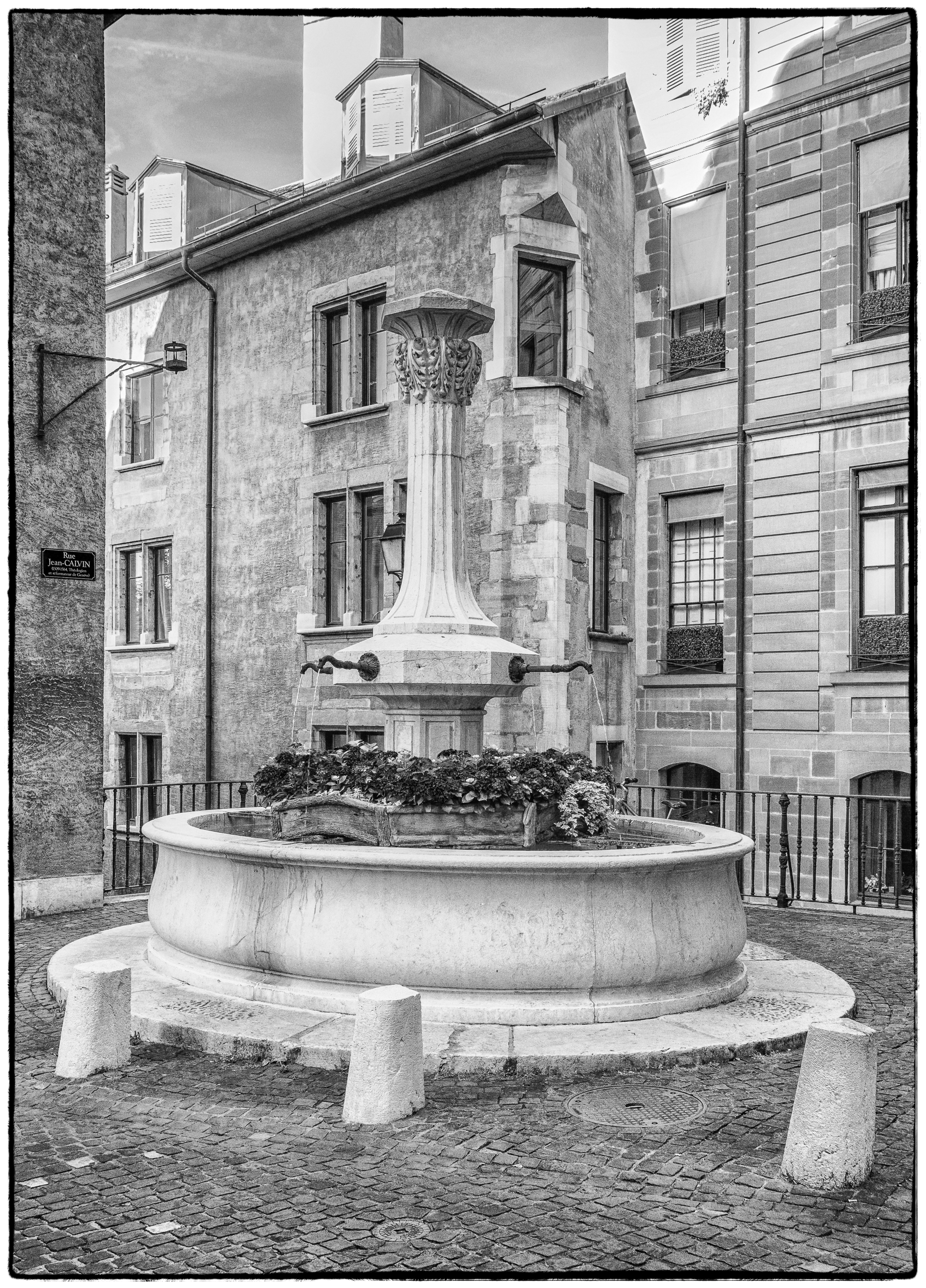 I don’t know who built it, why it was built, or even when. I just know that from the first time I saw it (probably around 1990) I’ve always loved this fountain tucked away in a corner where Rue Jean Calvin intersects with Rue du Puits-Saint-Pierre.