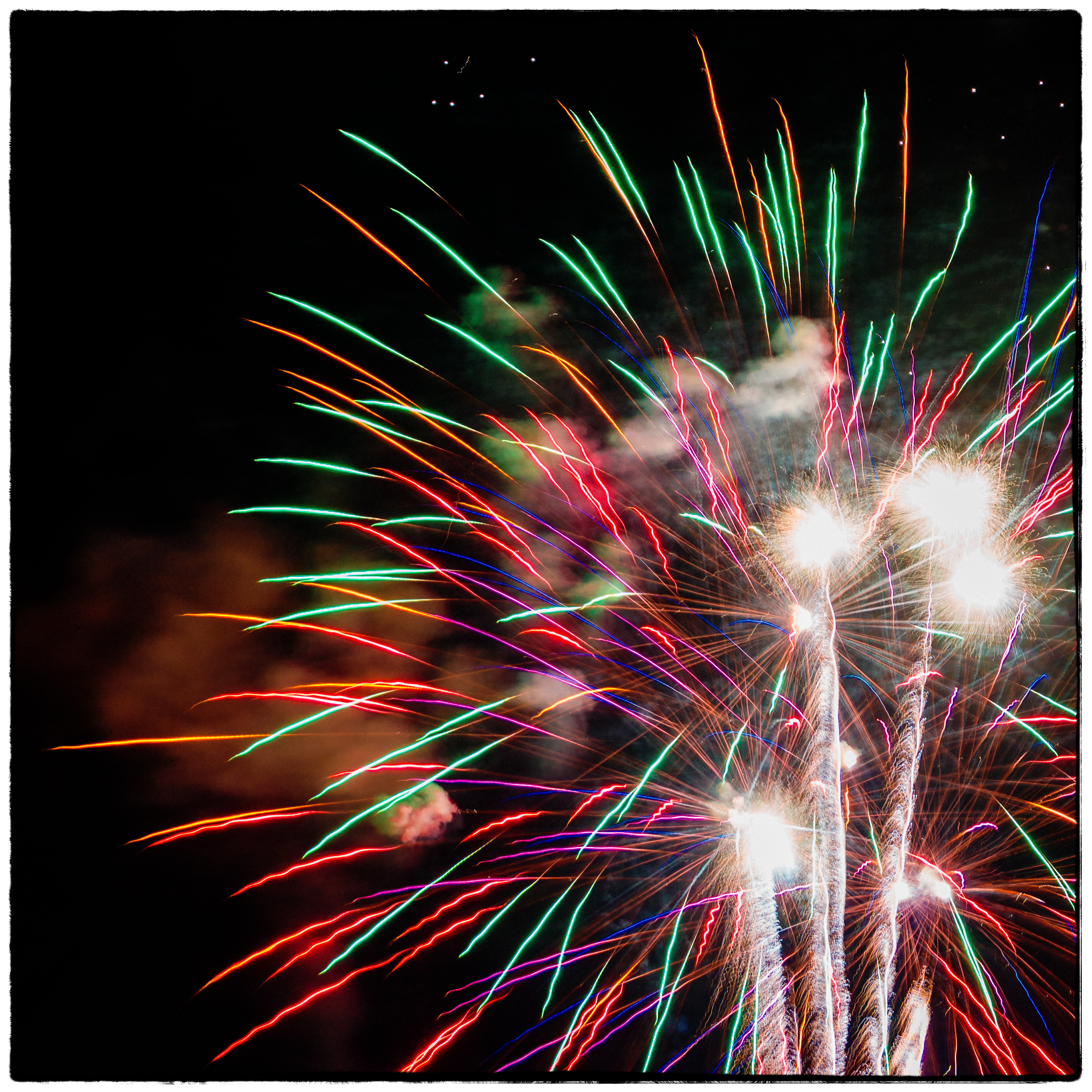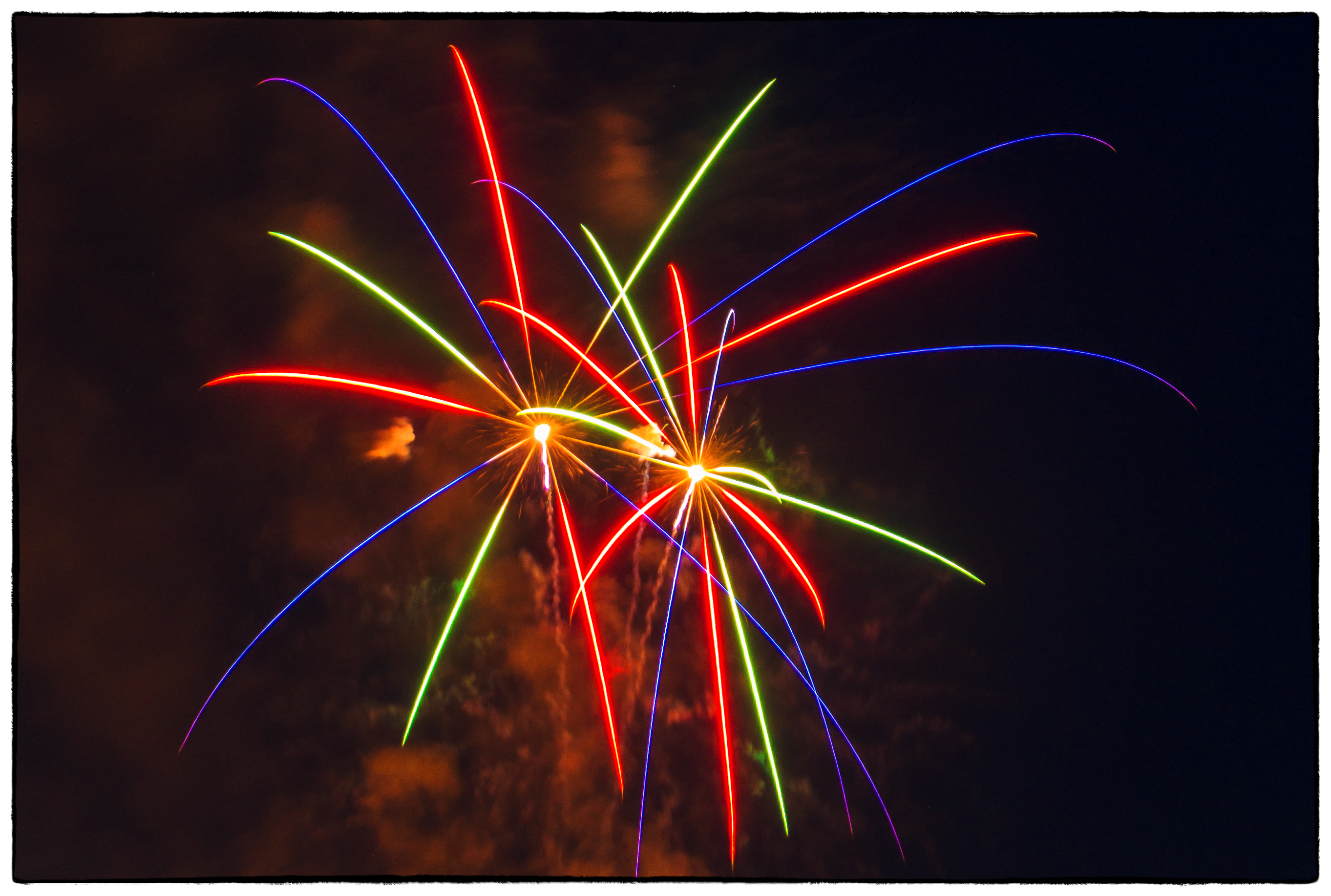 I’d tried taking photographs of fireworks before, but I’d never really prepared properly (merely using whatever camera I had with me). Predictably the results were not particularly good. This time I took a bit more care, bringing along a tripod and a shutter release cord. I’m much happier with these.
